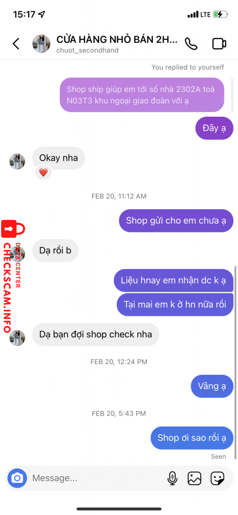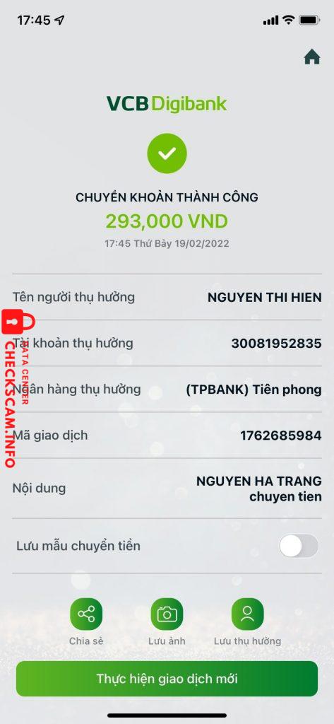 Scammer Alert: NGUYEN THI HIEN Reported: November 16, 2024 Scammer Information Full Name: NGUYEN THI HIEN Payment Gate: TP bank Payment Account: 30081952835 Category: Marketplace scams Source: Checkscam Evidence Files Report Description Lừa đảo bán hàng 2hand Comments Your comment Add Comment No comments yet. Be the first to share your experience with this scammer.
