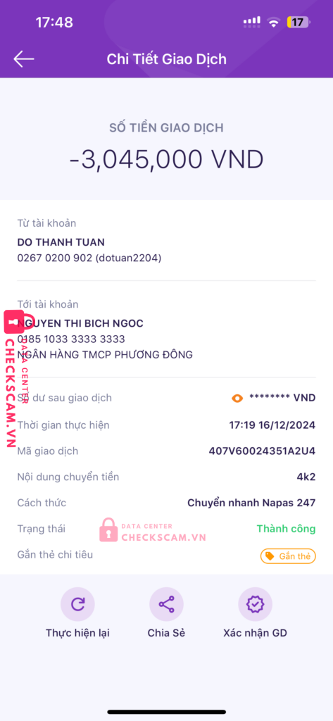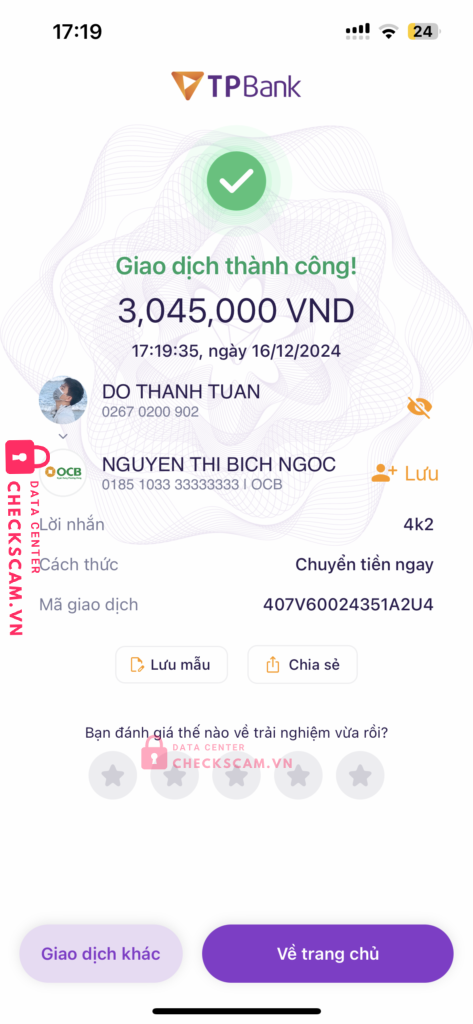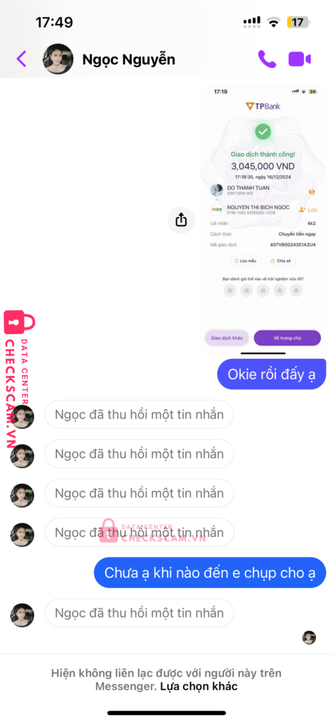Scammer Alert: Nguyễn thị hồng nhọc Reported: March 7, 2025 Scammer Information Full Name: Nguyễn thị hồng nhọc Payment Gate: Ocb Payment Account: 0185103333333333 Category: Marketplace scams Source: Checkscam Evidence Files Report Description Lừa đảo đổi bath thái Comments Your comment Add Comment No comments yet. Be the first to share your experience with this scammer.