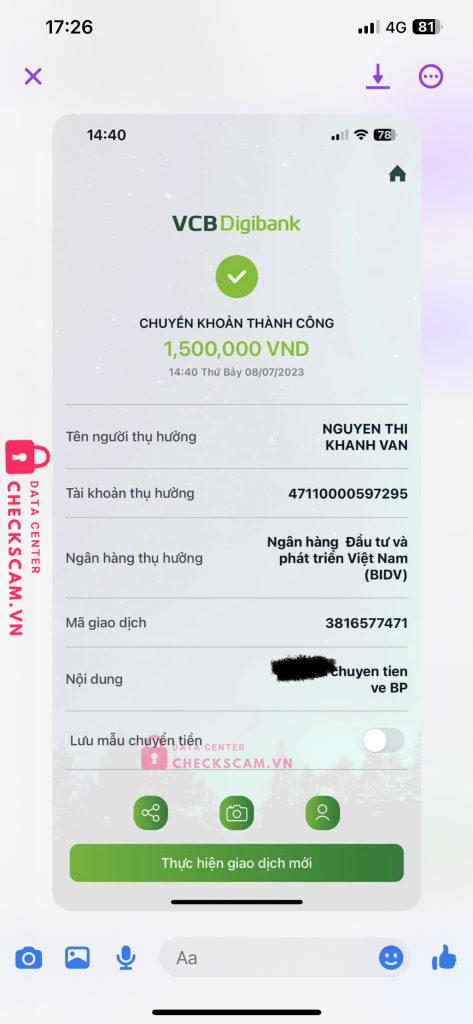 Scammer Alert: NGUYEN THI KHANH VAN