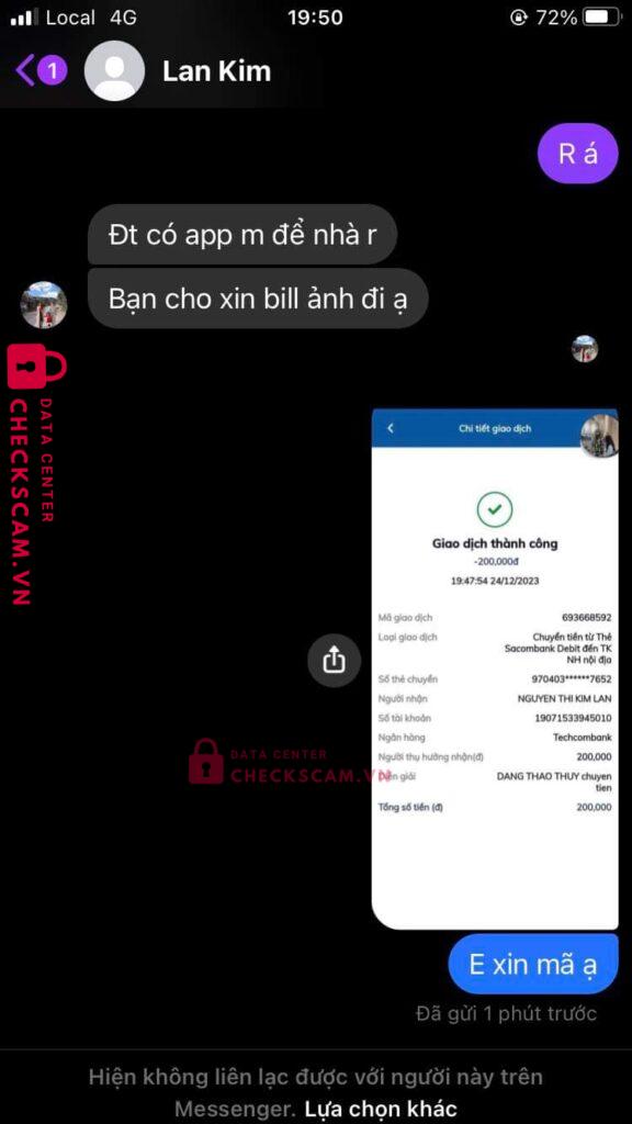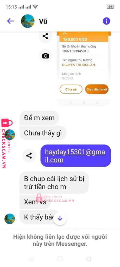 Scammer Alert: NGUYEN THI KIM LAN Reported: November 16, 2024 Scammer Information Full Name: NGUYEN THI KIM LAN Payment Gate: Techcombank Payment Account: 19071533945010 Category: Marketplace scams Source: Checkscam Evidence Files Report Description Lừa đảo mua bán ACC game Hayday Comments Your comment Add Comment No comments yet. Be the first to share your experience with this scammer.