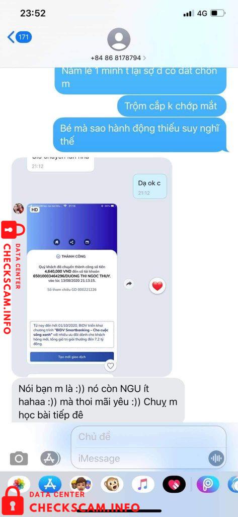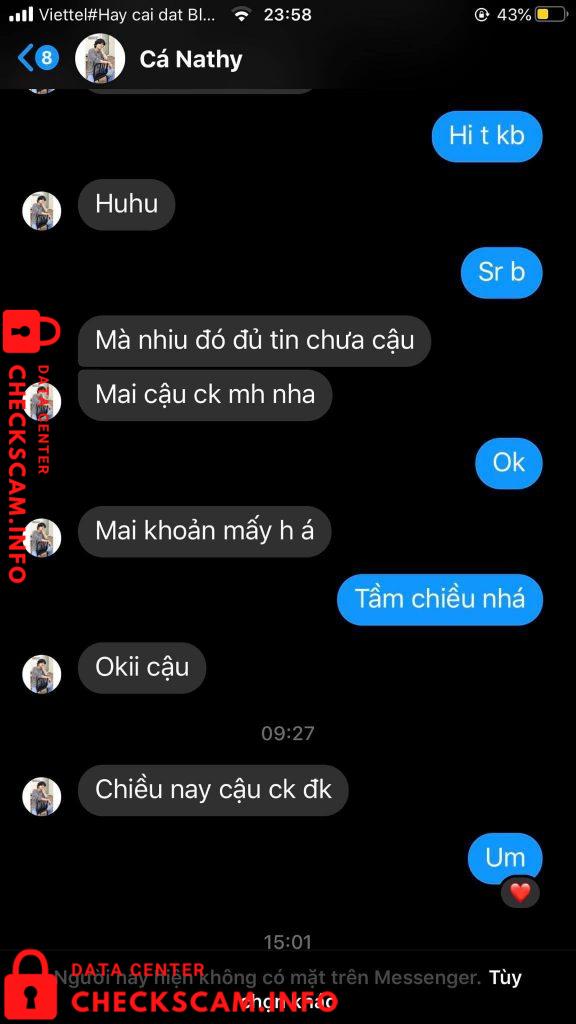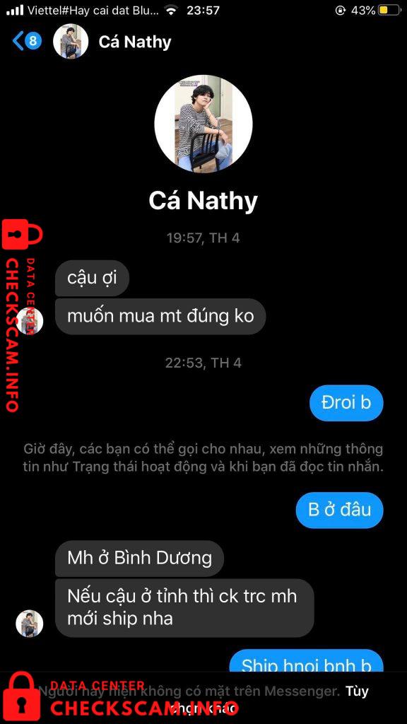 Hôm nọ, t cần mua máy tính hộ cho bạn, thì lên nhóm tìm, bạn này (Fb: Cá Nathy) đã ibox giao báo với giá 300k, ship từ Bình Dương ra HN là 35k nhưng bạn hỗ trợ 50%. Và luôn trong tình trạng hỏi “lúc nào ck tiền” Bạn kêu ck trước thì mới ship, do 1 phần t cần mua gấp và thấy bạn quay máy ổn nên đã mua va chấp nhận ck tiền trước. Sau khi ck tiền xong thì tiếng sau t bị block. Lúc đó, t khả nghi đã gọi sdt bạn cho trc đó, nhưng ko nhấc máy rồi chặn luôn sdt. Bạn t đã nt nch với bạn kia thì được biết là: ( Fb: Cá Nathy) đã dùng nhiều fb ảo và sdt, stk lừa nhiều người tiền trăm tiền triệu . 320k ko to và cũng ko nhỏ nhưng cũng nói lên phẩm chất cng như nào =)) mng share để không bị mắc lừa tiền nhaa.