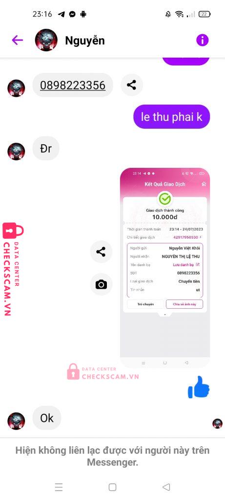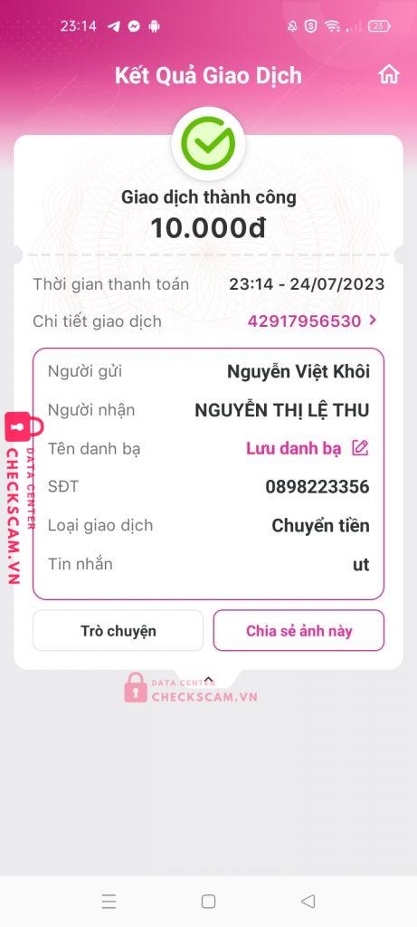 Scammer Alert: Nguyễn Thị Lệ Thu