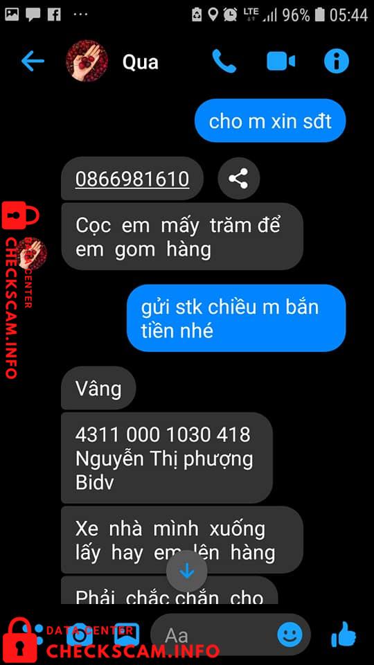 Scammer Alert: Nguyễn Thị Phượng Reported: November 16, 2024 Scammer Information Full Name: Nguyễn Thị Phượng Payment Gate: BIDV Payment Account: 4311000103418 Category: Marketplace scams Source: Checkscam Evidence Files Report Description Lừa đảo Comments Your comment Add Comment No comments yet. Be the first to share your experience with this scammer.