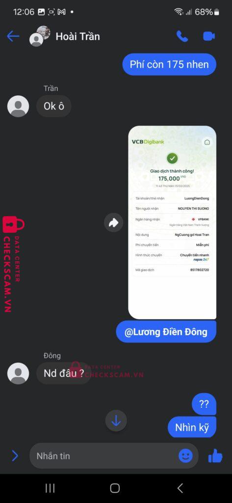 Scammer Alert: NGUYEN THI SUONG Reported: March 7, 2025 Scammer Information Full Name: NGUYEN THI SUONG Payment Gate: Vp bank Payment Account: LuongDienDong Category: Marketplace scams Source: Checkscam Evidence Files Report Description Fake điền đông Comments Your comment Add Comment No comments yet. Be the first to share your experience with this scammer.