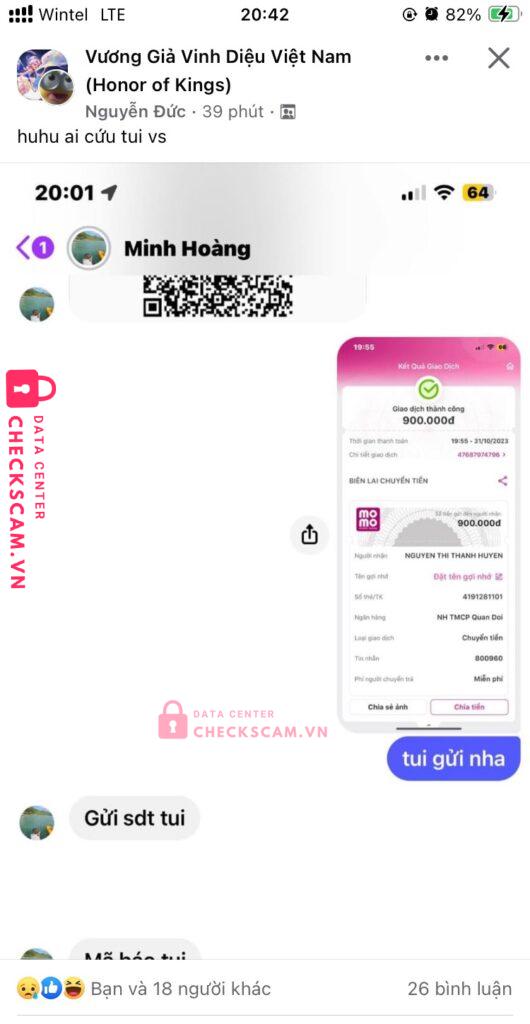 Scammer Alert: NGUYEN THI THANH HUYEN Reported: November 16, 2024 Scammer Information Full Name: NGUYEN THI THANH HUYEN Payment Gate: Momo Payment Account: 4191281101 Category: Marketplace scams Source: Checkscam Evidence Files Report Description Lừa đảo mua bán tài khoản game Vương Giả Vinh Diệu và tài khoản QQ, Wechat Comments Your comment Add Comment No comments yet. Be the first to share your experience with this scammer.