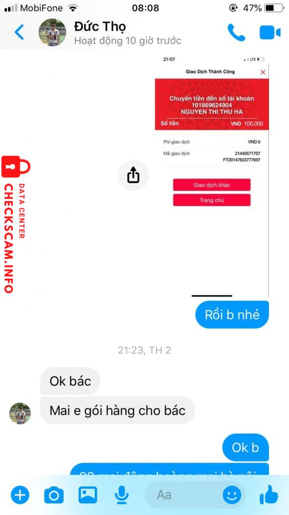 Scammer Alert: Nguyen Thi Thu Ha Reported: November 16, 2024 Scammer Information Full Name: Nguyen Thi Thu Ha Payment Gate: Vietcombank Payment Account: 101869624904 Category: Marketplace scams Source: Checkscam Evidence Files Report Description Góc lừa đảo Dm có 100k cũng phải đi lừa Nếu mày có con rồi thì tao tặng 100k cho con mày Còn riêng con chó này tao bắt dk tao băm làm 8 mảnh Comments Your comment Add Comment No comments yet. Be the first to share your experience with this scammer.
