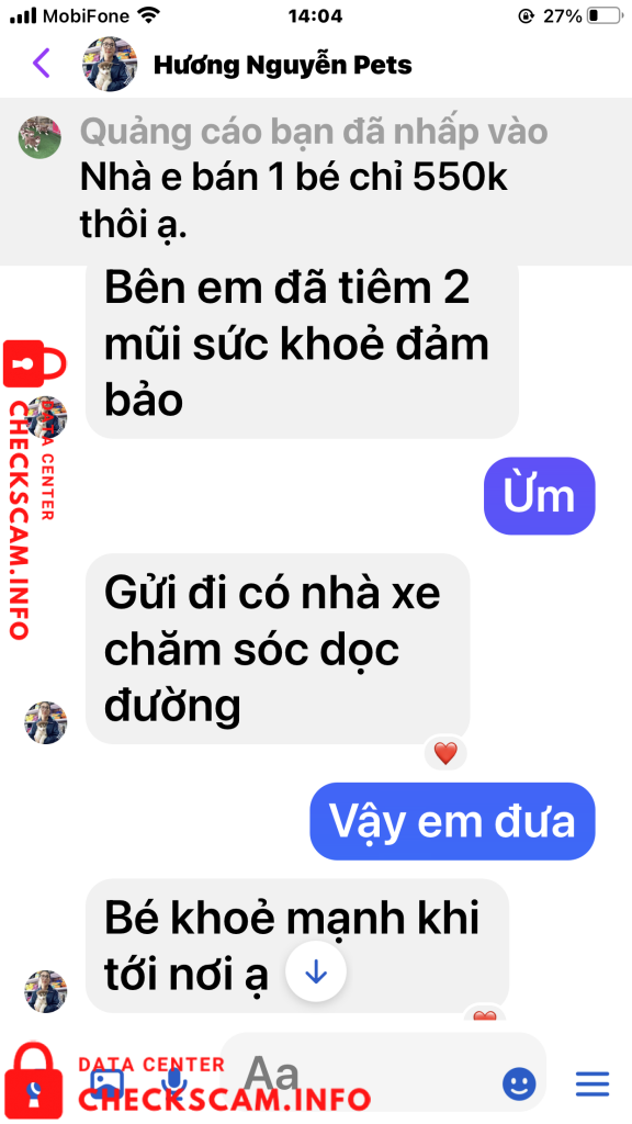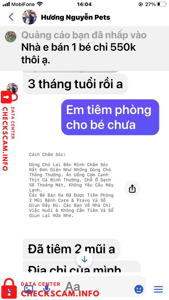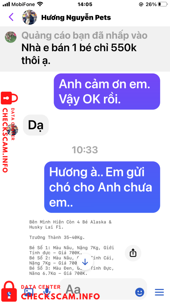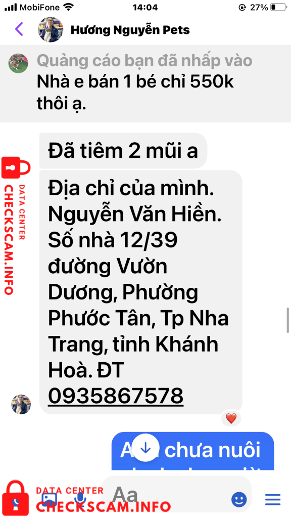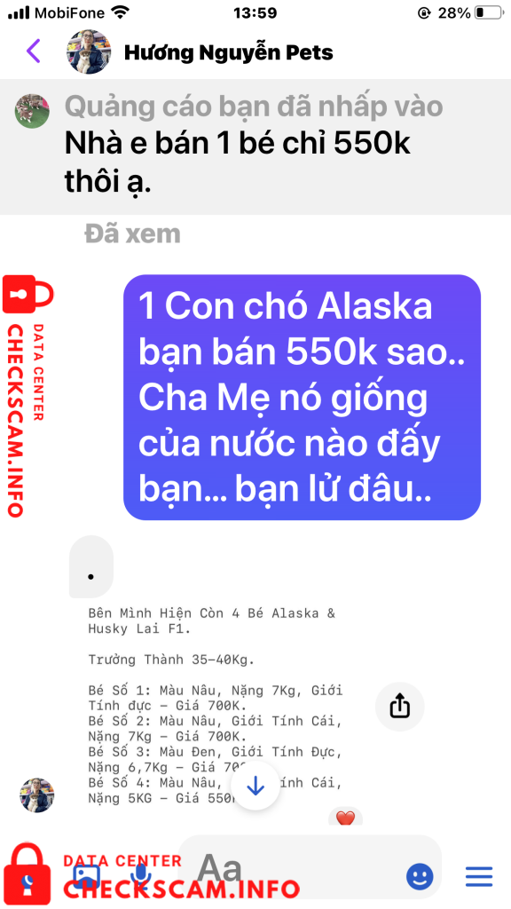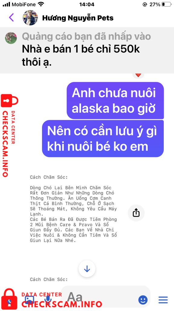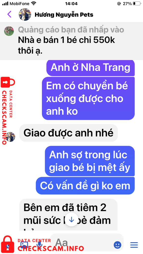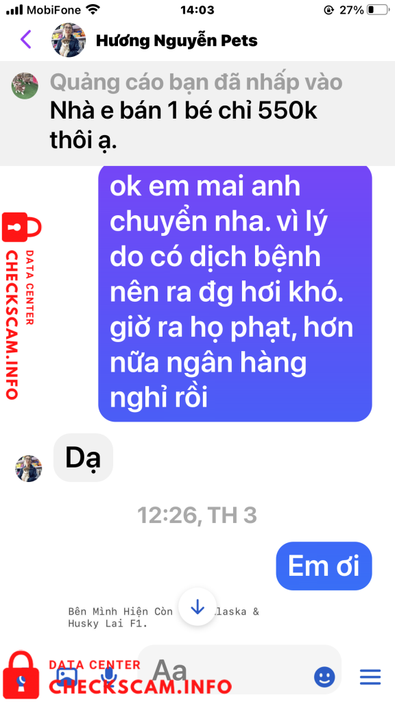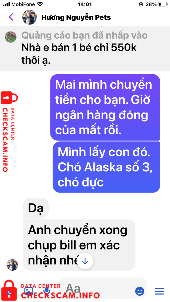 Sau khi chuyển tiền tôi đã gửi biên lai cho chị Hương đồng thời cũng nhắn tin và điện thoại cho cả 2 vợ chồng chị ấy để hỏi .. Bao giờ thì gửi chó cho tôi. Ngay lập tức vợ chồng chị Hương chặn tin nhắn của tôi đồng thời chặn luôn số điện thoại của tôi gọi đến. Biết là bị lừa tôi đã vào Googd để tra tên số điện thoại của vợ chồng chị Hương, qua đây tôi cũng được biết số điện thoại này cùng với Tên tài khoản cá nhân mang tên Hương Nguyễn Pets cũng đã từng đi lừa nhiều người với hình thức lừa như tôi và cũng đã bị tố cáo trên Googd. (Tất cả chứng cứ tôi đã post lên trên phần ảnh bằng chứng). Rất mong các cơ quan chính quyền và các tổ chức liên quan sớm vào cuộc điều tra vào cuộc. Để tránh vợ chồng chị Hương tiếp tục lừa đảo thêm nhiều người khác nữa. Tôi đề nghị các cơ quan chức năng sớm vào cuộc, vì mỗi 1 ngày vợ chồng chị này lừa rất nhiều người chính vì đó số tiền sẽ không còn phải là 350k nữa mà sẽ là con số lơn hơn rất nhiều. Trân trọng (Nghi chú tài sao tôi tố cáo cả 2 vờ chồng chi Hương trong khi giao dịch chỉ có tôi và tên tài khoản có tên Hương Nguyễn Pest. Vì tôi hỏi địa chỉ nhà Chị Hương ở đâu, Chị có chụp tấm bảng quảng cáo có chữ Siêu Thị Thú Cưng. Tôi Gọi vào số điện thoại nghi trên biển là 0931639527 thì có 1 người đàn ông tự giới thiệu là chồng của chị Hương khảng định đúng là siêu thị Thú Cưng của 2 vợ chồng chị và đồng ý bán cho tôi con chó giống Alaska với giá 700k, nói tôi cứ an tâm chuyển tiền đi để Anh ta gửi chó xuống cho tôi). Tôi chuyển tiền xong gọi lại thì đều bị chặn cuộc gọi.
