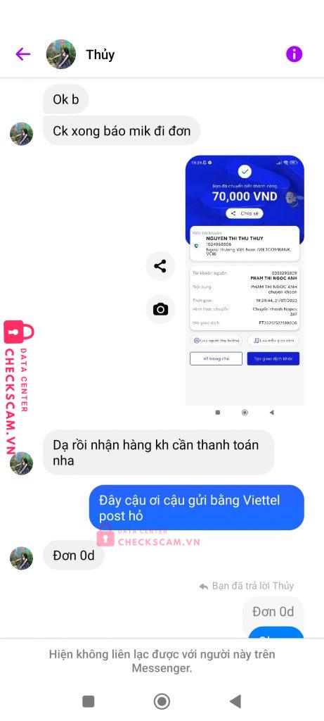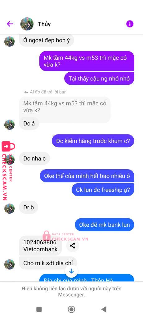 Scammer Alert: Nguyễn Thị Thu Thủy Reported: November 16, 2024 Scammer Information Full Name: Nguyễn Thị Thu Thủy Payment Gate: Vietcombank Payment Account: 1024068806 Category: Marketplace scams Source: Checkscam Evidence Files Report Description Lừa đảo bán quần áo online qua Facebook sau khi ck xong thì xoá tài khoản FB và chặn. Comments Your comment Add Comment No comments yet. Be the first to share your experience with this scammer.