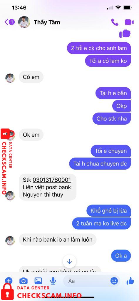 Stk 030131780001 Liên việt post bank Nguyen thi thuy Lừa Đảo – Em bị khóa live, bạn này nó mở phí là 500k. chuyển khoản xong mất tích. nên em up phốt. em chịu trách nhiệm nếu như đăng sai thông tin bạn này