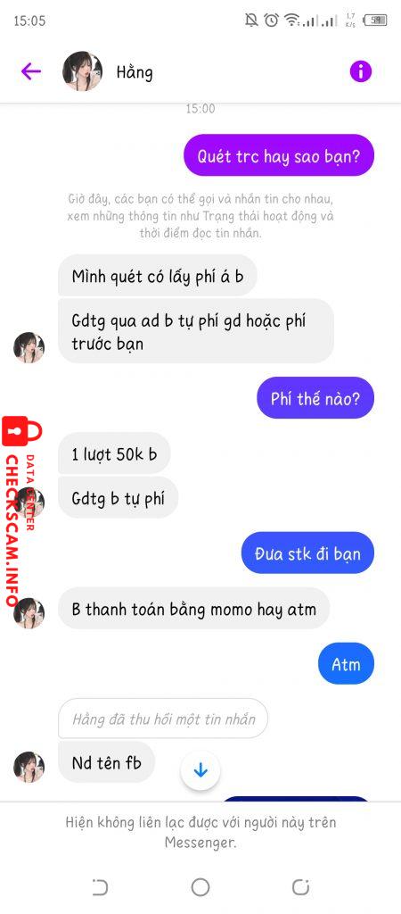 Scammer Alert: Nguyễn Thị Thúy Hằng Reported: November 16, 2024 Scammer Information Full Name: Nguyễn Thị Thúy Hằng Payment Gate: BIDV Payment Account: 55810000440656 Category: Marketplace scams Source: Checkscam Evidence Files Report Description Scam quét mã wechat, thu hồi đoạn chat nhanh, nhận xong tiền block Comments Your comment Add Comment No comments yet. Be the first to share your experience with this scammer.