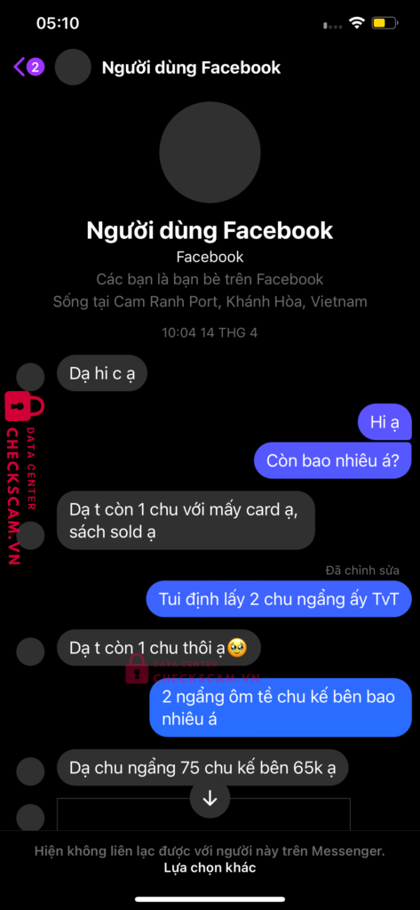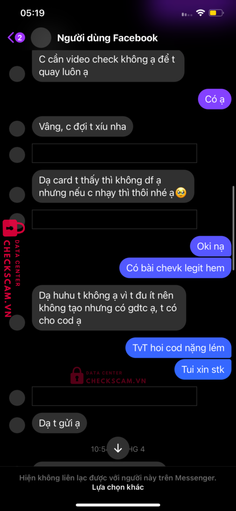 Scammer Alert: NGUYEN THI YEN Reported: November 16, 2024 Scammer Information Full Name: NGUYEN THI YEN Payment Gate: MB Payment Account: 001123068888 Category: Marketplace scams Source: Checkscam Evidence Files Report Description Đăng ảnh bán card, gửi cả video check card, name tag đầy đủ. Còn gửi cả mã vận đơn nhưng sau đó liền xoá fb không gửi hàng đi Comments Your comment Add Comment No comments yet. Be the first to share your experience with this scammer.