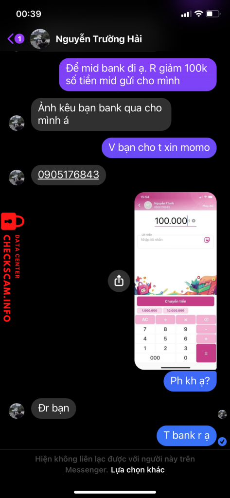 Scammer Alert: Nguyễn Thịnh Reported: November 16, 2024 Scammer Information Full Name: Nguyễn Thịnh Phone Number: 0905176843 Payment Gate: Momo Payment Account: 0905176843 Category: Marketplace scams Source: Checkscam Evidence Files Report Description Scam acc genshin, đòi hoàn lại tiền mid khi bên trung gian (giả) gắn lk đòi gỡ. Comments Your comment Add Comment No comments yet. Be the first to share your experience with this scammer.