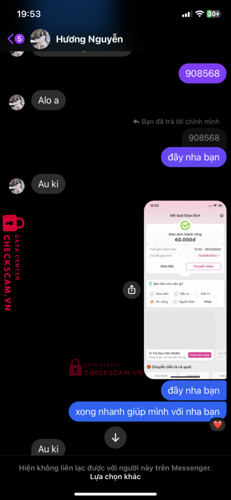 nó tư vấn nhiệt tình xong vào phá hết đồ. Bank tiền xong thì sủi luôn.Để link check scam. Vào app check scam báo lừa liên tục. Tưởng check lỗi ai ngờ nhìn nhầm con scam chính hiệu .Nên né con này ra.