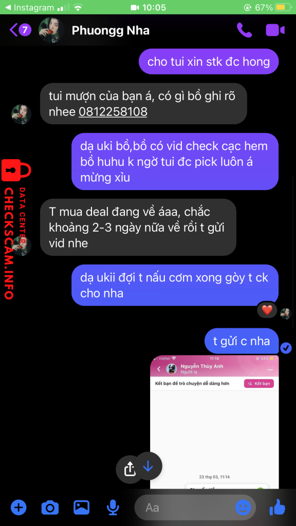 Scammer Alert: nguyễn thuỳ anh Reported: November 16, 2024 Scammer Information Full Name: nguyễn thuỳ anh Phone Number: 0812258108 Payment Gate: momo Payment Account: 0812258108 Category: Marketplace scams Source: Checkscam Evidence Files Report Description b này ko chỉ scam mình còn scam rất nhiều người khác nữa Comments Your comment Add Comment No comments yet. Be the first to share your experience with this scammer.