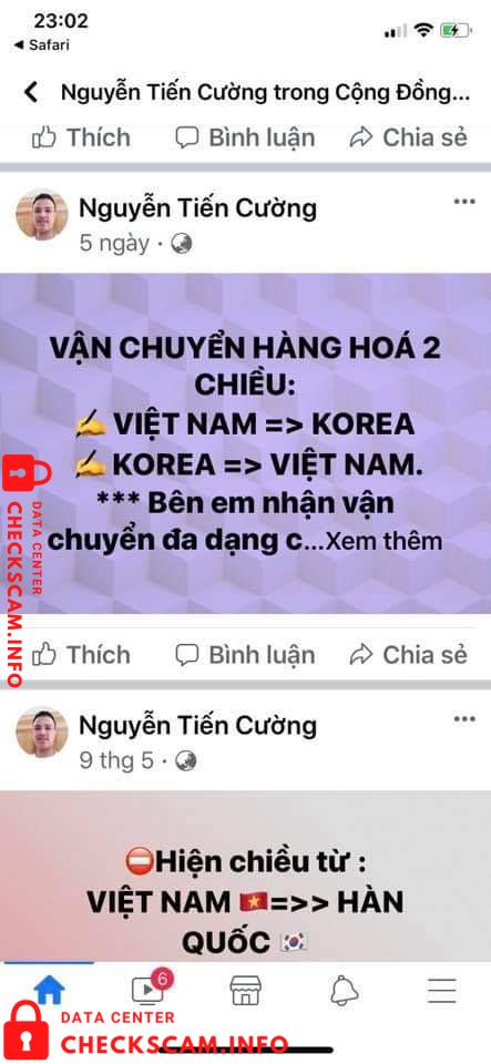 Scammer Alert: Nguyễn Tiến Cường Reported: November 16, 2024 Scammer Information Full Name: Nguyễn Tiến Cường Payment Gate: Techcombank Payment Account: 19036030082015 Category: Marketplace scams Source: Checkscam Evidence Files Report Description ĐƠN VỊ VẬN CHUYỂN CỰC KỲ THIẾU CHUYÊN NGHIỆP, LÀM THẤT LẠC HÀNG HOÁ KHÔNG BỒI THƯỜNG THEO ĐÚNG QUY ĐỊNH. Comments Your comment Add Comment No comments yet. Be the first to share your experience with this scammer.
