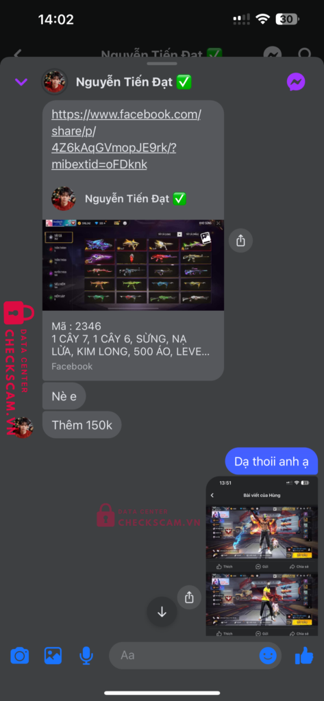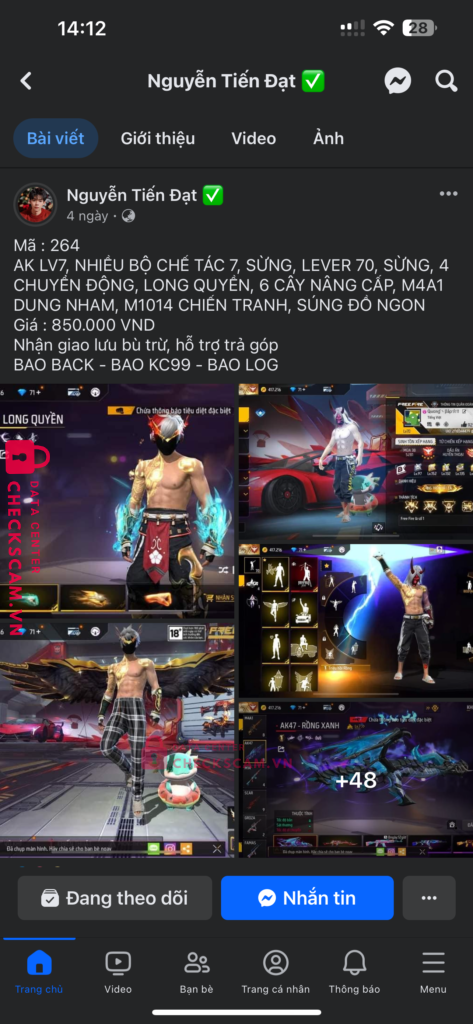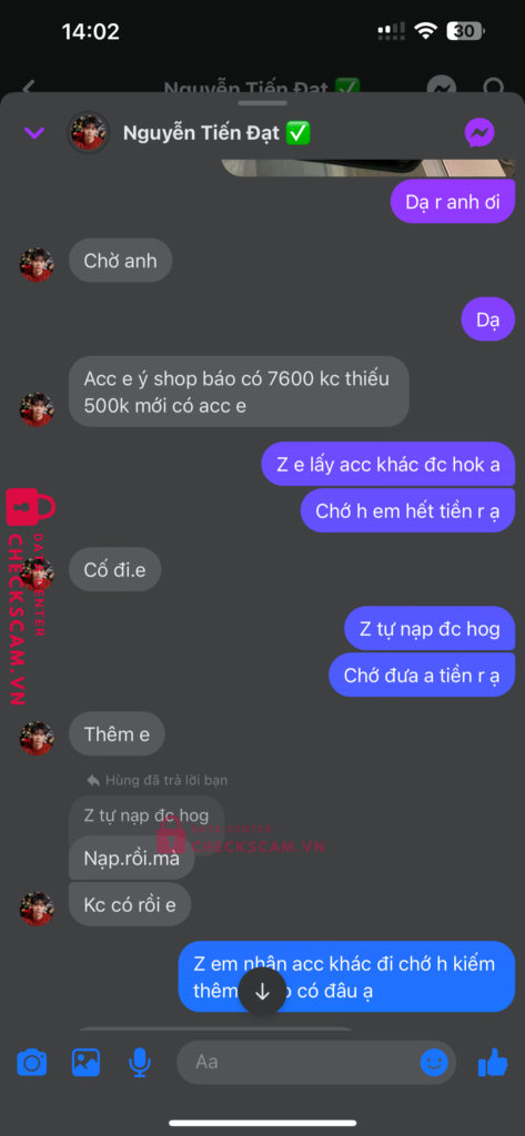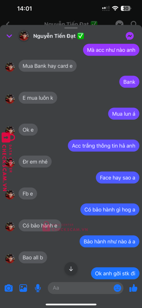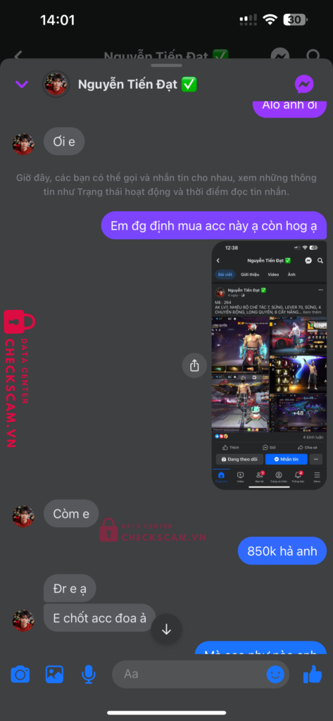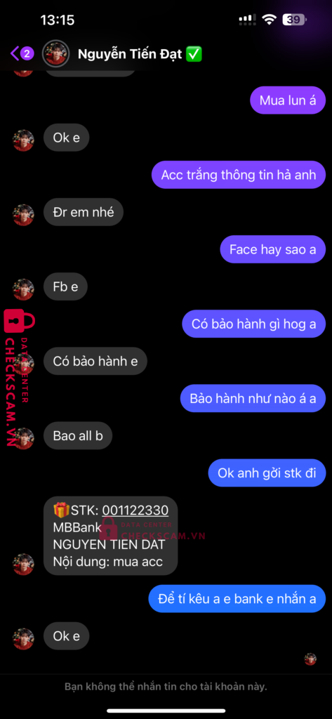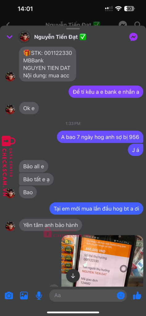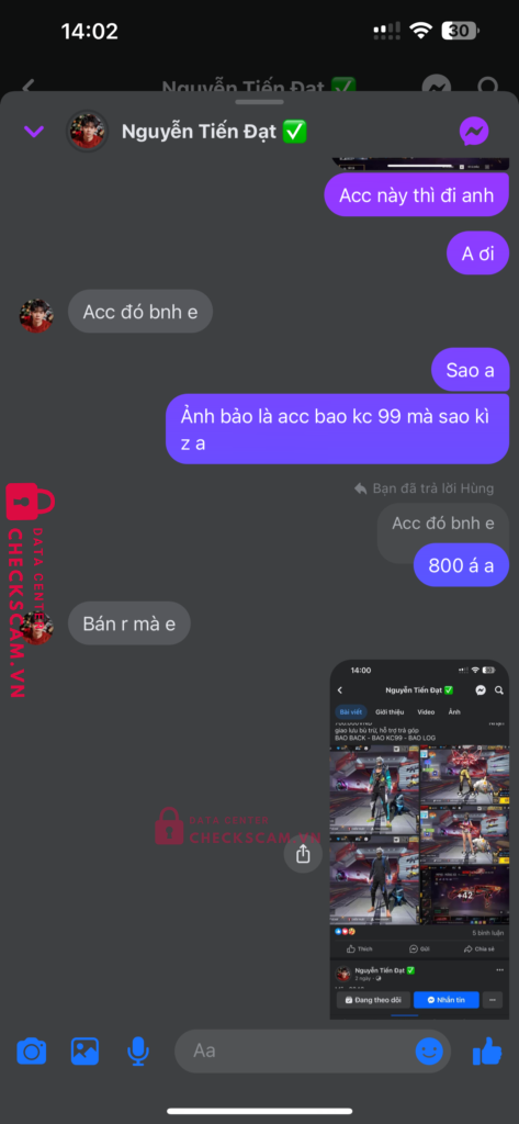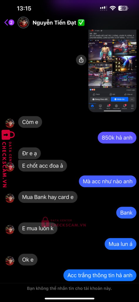 Tên này scam mình 850k với nuội dung mua acc và kêu mình cứ bank thêm 500k nữa để mở kc và mình ko bank thanh niên ko đưa acc đg thiếu kc hay hoàn lại tiền kiêu đưa acc khác thì lại hết cảnh giác tên này
