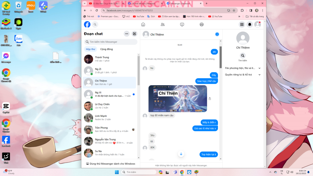 Lần đầu e mua acc sinnerta, xong nó show cho e con đó có top, nó bảo 80k. Xong nó nói chuyện xàm xàm, văn vở dụ e mua acc, xong e bảo vào acc chụp thử thì nó nói này kia né tránh. E bảo giảm k thì nó nói giảm 70, xong e bảo còn 68k thì nó nói lụm luôn, xong e chuyển tiền thì nó chặn e