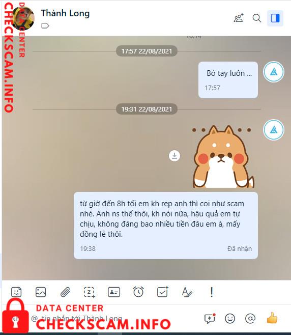 Số tiền bị lừa không lớn, chỉ 620k, nên mình không up bài phốt làm gì. Mình up lên Checkscam để ae biết tránh giao dịch với thg nhõi này thôi. Tại trước nó có mua VPS bên mình nên mình thiếu cảnh giác.