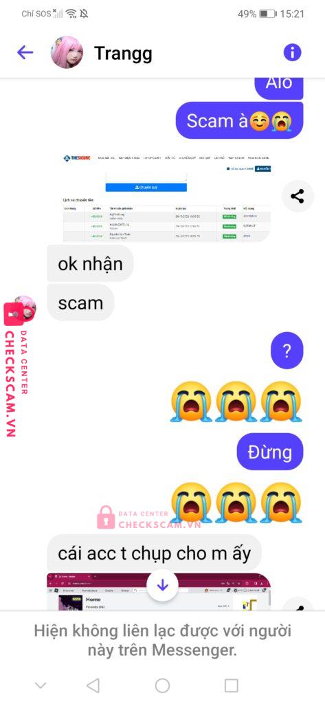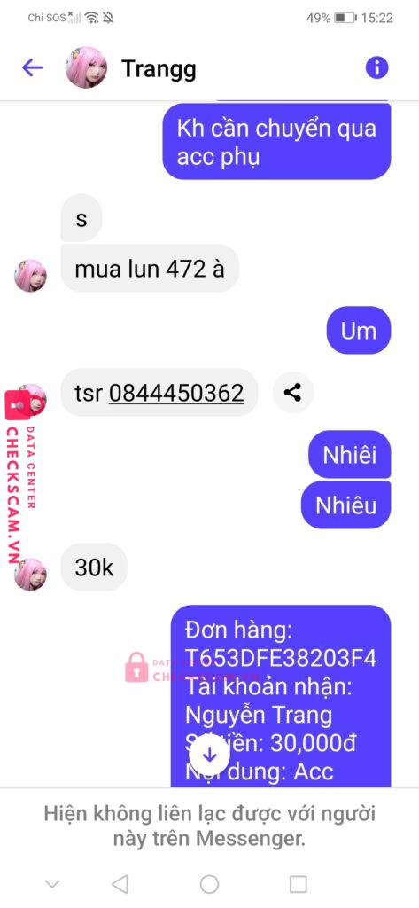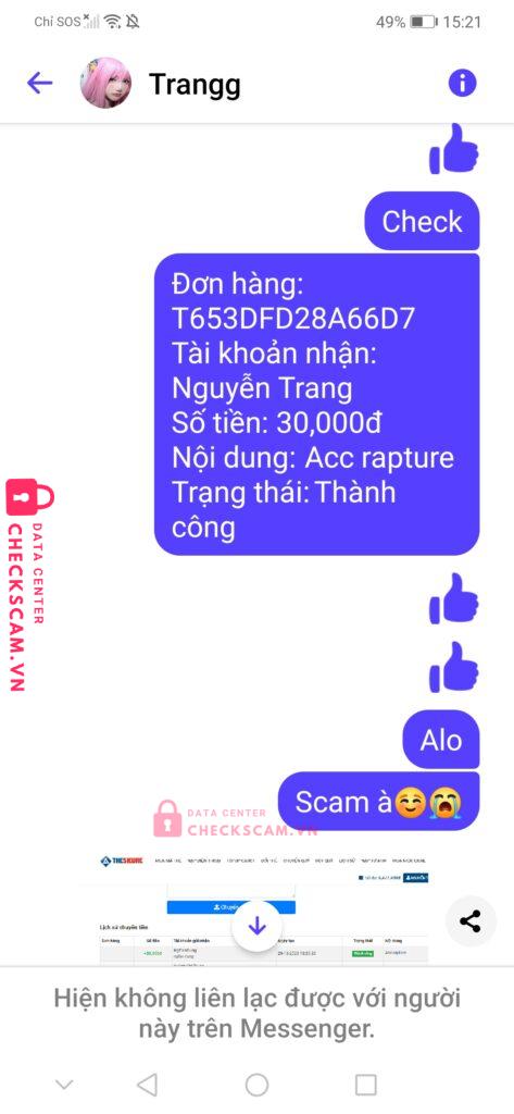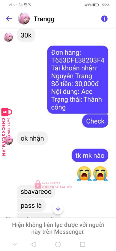 Scammer Alert: Nguyễn Trang Reported: November 16, 2024 Scammer Information Full Name: Nguyễn Trang Payment Gate: Tsr Payment Account: 0844450362 Category: Marketplace scams Source: Checkscam Evidence Files Report Description Mua Gp Roblox 399 Robux Rồi Bị Dụ Mua Luôn Acc Rapture Blade Ball Dư 472 robux,xong chuyển Khoản rùi chặn. Comments Your comment Add Comment No comments yet. Be the first to share your experience with this scammer.