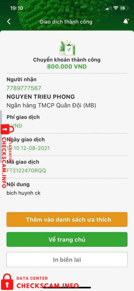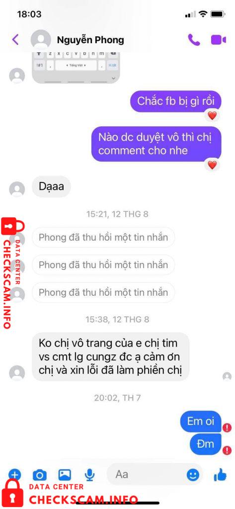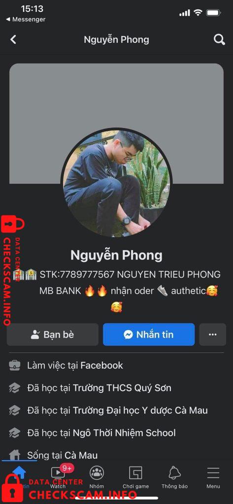 Scammer Alert: Nguyen Trieu Phong Reported: November 16, 2024 Scammer Information Full Name: Nguyen Trieu Phong Payment Gate: MB Payment Account: 7789777567 Category: Marketplace scams Source: Checkscam Evidence Files Report Description Lừa đảo chiếm đoạt tài sản. Khách đặt hàng chuyển khoản sau đó thì chặn khách hàng Comments Your comment Add Comment No comments yet. Be the first to share your experience with this scammer.