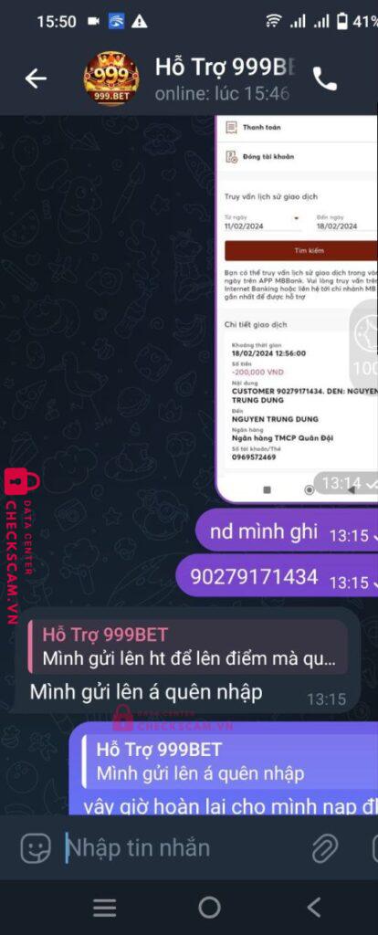 Scammer Alert: NGUYEN TRUNG DUNG Reported: November 16, 2024 Scammer Information Full Name: NGUYEN TRUNG DUNG Payment Gate: MB BANK Payment Account: 0969572469 Category: Marketplace scams Source: Checkscam Evidence Files Report Description NÓ KÊU TÔI CHUYỂN TIỀN VÔ GAME MÀ TÔI CHUYỂN CHO NÓ XONG NÓ SCAM Comments Your comment Add Comment No comments yet. Be the first to share your experience with this scammer.