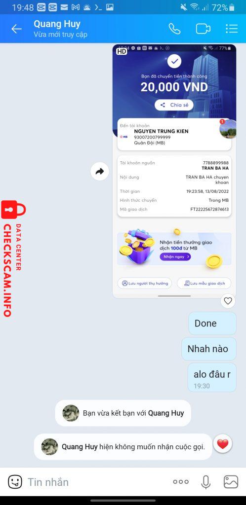 Scammer Alert: Nguyen Trung Kien Reported: November 16, 2024 Scammer Information Full Name: Nguyen Trung Kien Payment Gate: MB Bank Payment Account: 93007200799999 Category: Marketplace scams Source: Checkscam Evidence Files Report Description Comments Your comment Add Comment No comments yet. Be the first to share your experience with this scammer.