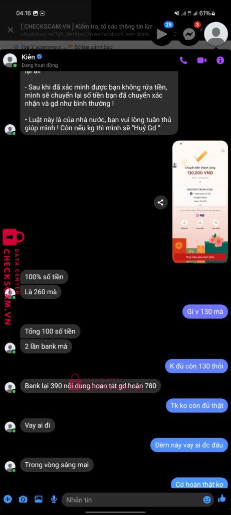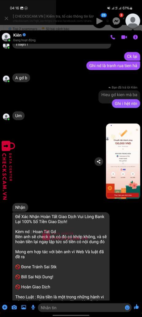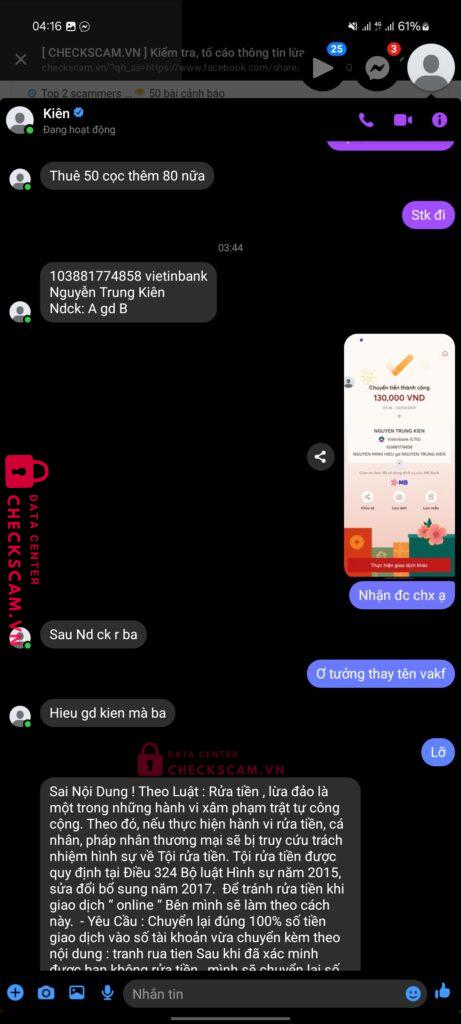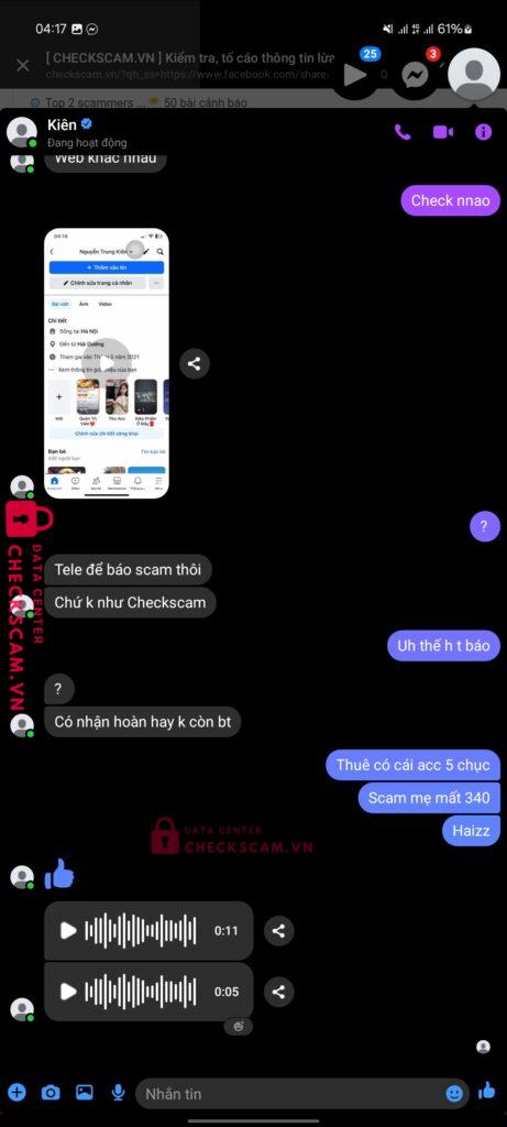 Scammer Alert: Nguyễn Trung Kiên Reported: March 7, 2025 Scammer Information Full Name: Nguyễn Trung Kiên Payment Gate: Vietinbank Payment Account: 103881774858 Category: Marketplace scams Source: Checkscam Evidence Files Report Description Scam lấy lí do sai nd bắt ck lại ck lại xong bắt ck tiếp xác nhận hoàn lại lấy lí do cl ko đủ bắt ck cao hơn Comments Your comment Add Comment No comments yet. Be the first to share your experience with this scammer.