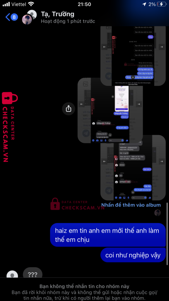 bì tui tìm 1 vậy phẩm trong tựa game đó tôi đã đăng bài lên mạng để tìm thì gặp đc anh bạn này kêu tôi là anh bạn ấy sẽ bán cho tôi và gửi tôi gdtg của bạn ấy vì chủ quan tôi đã không tìm hiểu thông tin và giao dịch luôn và sau khi xong tôi đã bị chặn