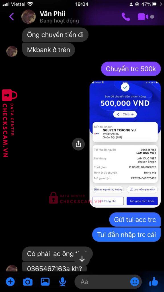 Scammer Alert: Nguyễn Trương Vũ Reported: November 16, 2024 Scammer Information Full Name: Nguyễn Trương Vũ Payment Gate: Mb Bank Payment Account: 7988999986 Category: Marketplace scams Source: Checkscam Evidence Files Report Description Scam 1m Comments Your comment Add Comment No comments yet. Be the first to share your experience with this scammer.
