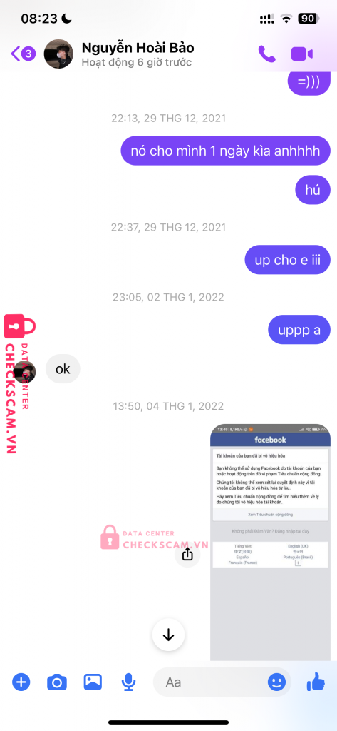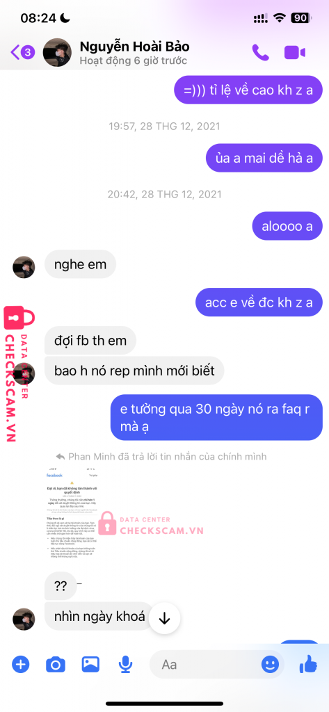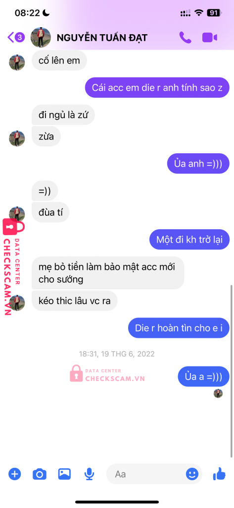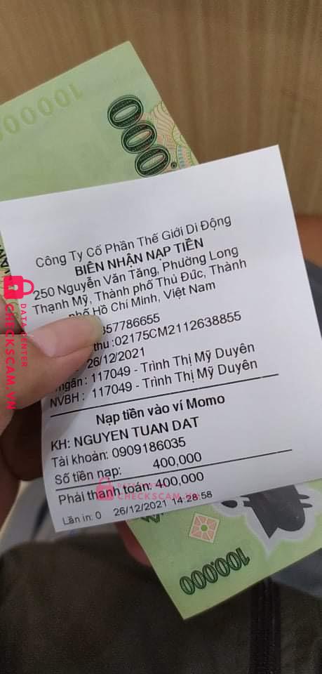 Scammer Alert: Nguyễn Tuấn Đạt Reported: November 16, 2024 Scammer Information Full Name: Nguyễn Tuấn Đạt Phone Number: 0909186035 Payment Gate: MoMo Payment Account: 0909186035 Category: Marketplace scams Source: Checkscam Evidence Files Report Description Nhận mở fb hứa hẹn đủ thứ, làm mất acc xong kh hoàn lại tiền. Face lừa đảo bán acc cho ngkh nên h kh biết acc chính là acc nào Comments Your comment Add Comment No comments yet. Be the first to share your experience with this scammer.