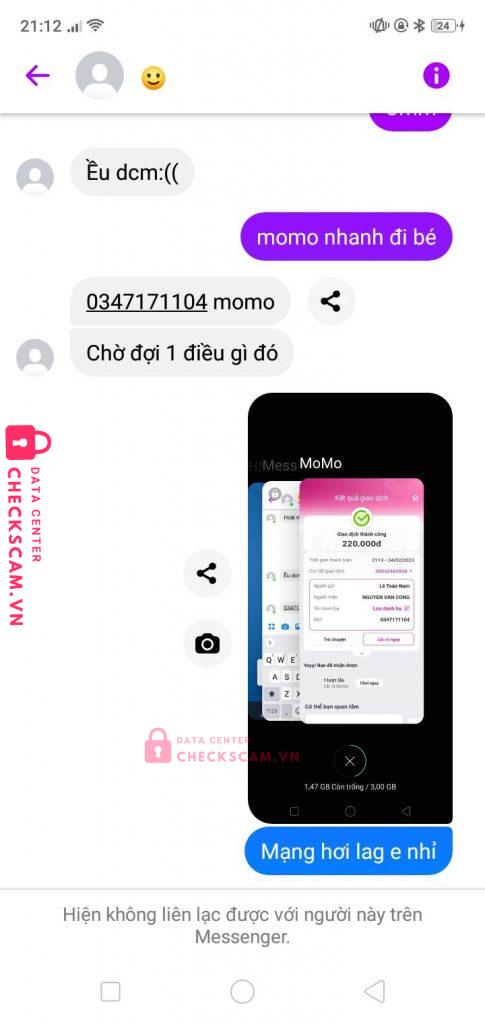 Scammer Alert: Nguyen Van Cong Reported: November 16, 2024 Scammer Information Full Name: Nguyen Van Cong Phone Number: 0347171104 Payment Gate: Momo Payment Account: 0347171104 Category: Marketplace scams Source: Checkscam Evidence Files Report Description Rẻ rách scam Comments Your comment Add Comment No comments yet. Be the first to share your experience with this scammer.