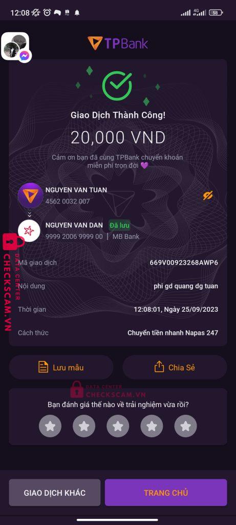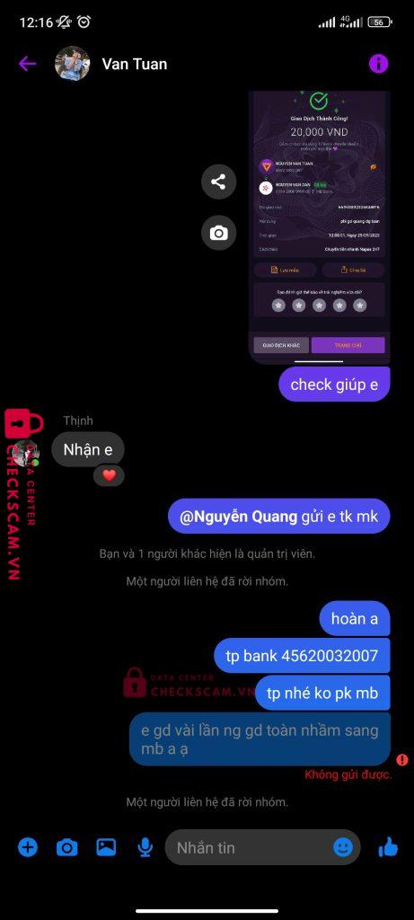 Scammer Alert: Nguyen Van Dan Reported: November 16, 2024 Scammer Information Full Name: Nguyen Van Dan Payment Gate: mb bank Payment Account: 99992006999900 Category: Marketplace scams Source: Checkscam Evidence Files Report Description scam giả làm gdv Comments Your comment Add Comment No comments yet. Be the first to share your experience with this scammer.