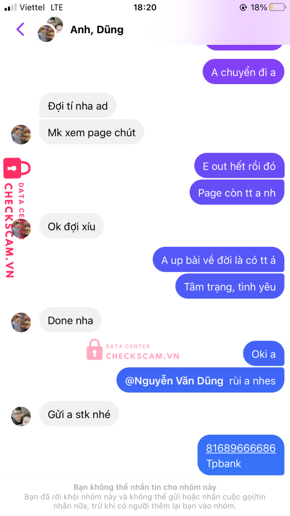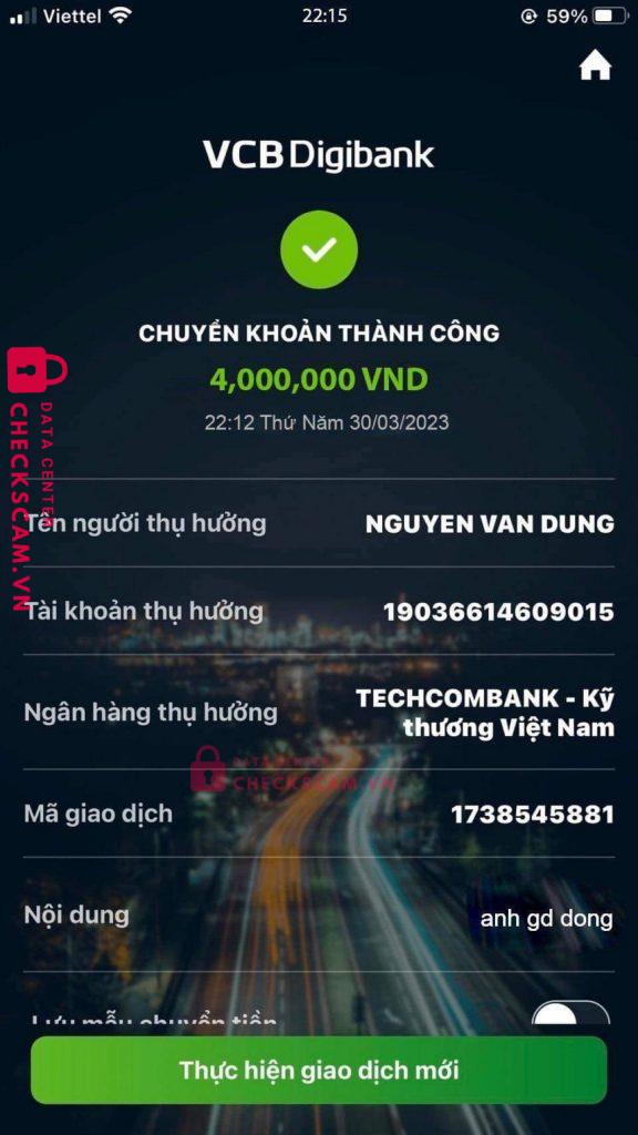 Scammer Alert: NGUYEN VAN DUNG Reported: November 16, 2024 Scammer Information Full Name: NGUYEN VAN DUNG Payment Gate: TECHCOMBANK Payment Account: 19036614609015 Category: Marketplace scams Source: Checkscam Evidence Files Report Description Scam page 4 triệu Comments Your comment Add Comment No comments yet. Be the first to share your experience with this scammer.