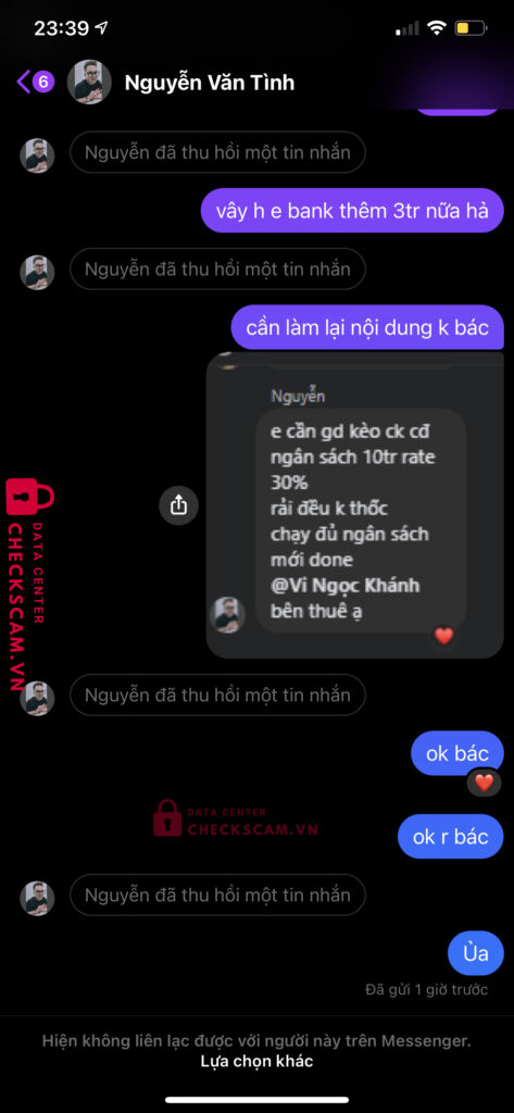 Scammer Alert: NGUYEN VAN LOC Reported: November 16, 2024 Scammer Information Full Name: NGUYEN VAN LOC Payment Gate: Tp bank Payment Account: 00005617546 Category: Marketplace scams Source: Checkscam Evidence Files Report Description Scam lừa đảo chạy Fb ads Comments Your comment Add Comment No comments yet. Be the first to share your experience with this scammer.