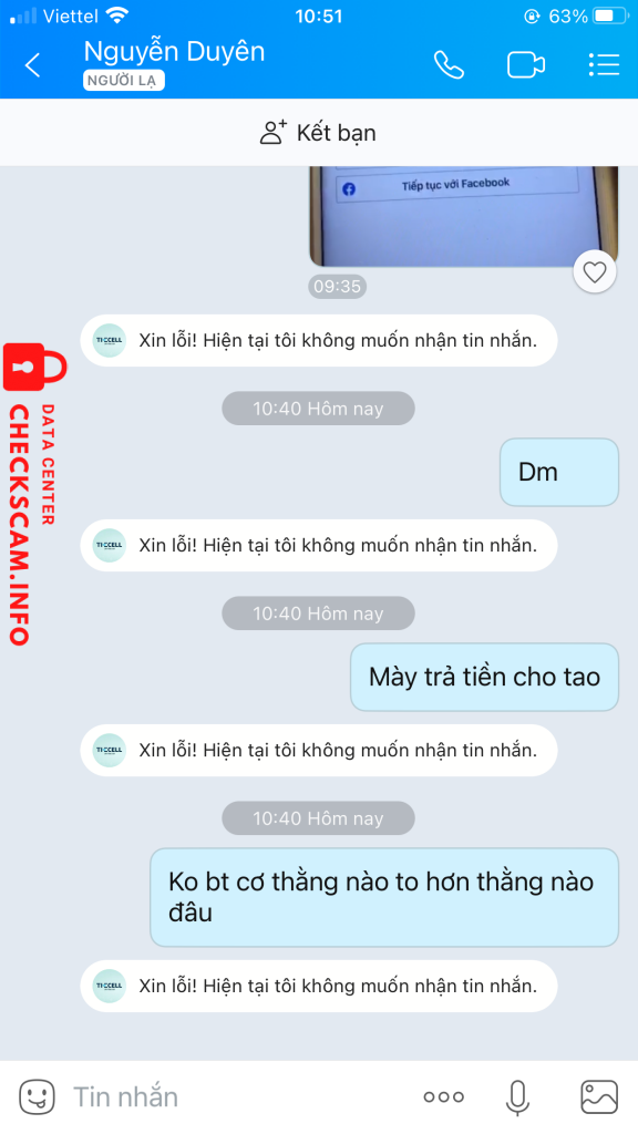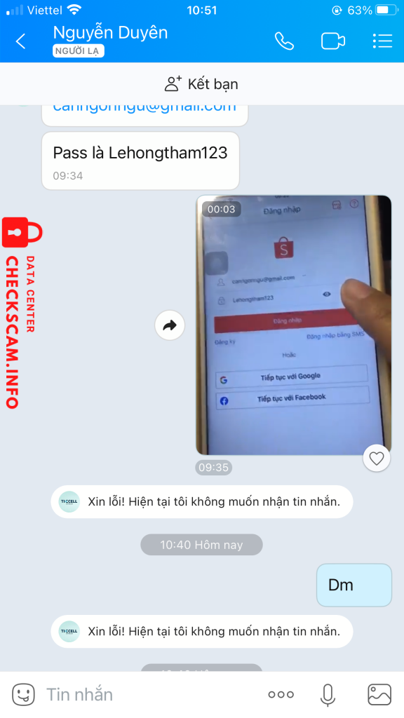 Scammer Alert: Nguyễn Văn Long Reported: November 16, 2024 Scammer Information Full Name: Nguyễn Văn Long Payment Gate: VIB Payment Account: 601704060696057 Category: Marketplace scams Source: Checkscam Evidence Files Report Description Lừa đảo tiền, giả người trung gian Comments Your comment Add Comment No comments yet. Be the first to share your experience with this scammer.