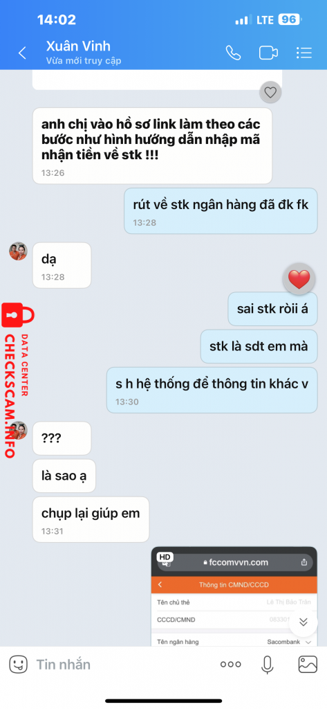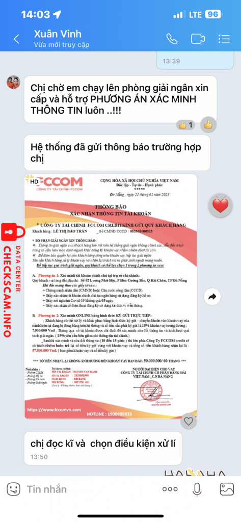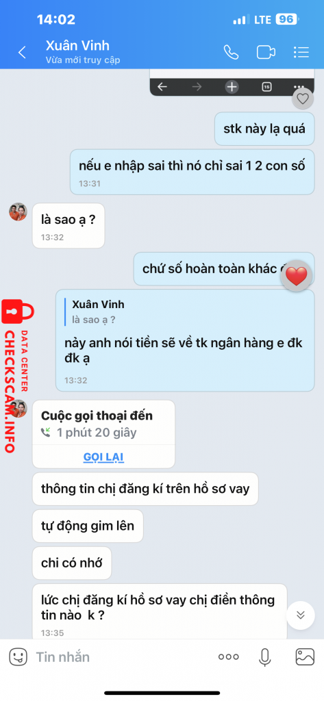 Lúc nhỏ tổng đài viên gọi đt là nghi rồi, tại thường mấy bạn gọi mình là Saler chứ ai như kiểu tổng đài viên gọi rồi kêu tự kết bạn Zalo với nhỏ tư vấn viên. Tỏ ra chuyên nghiệp lắm nhưng lại có 1 số lổ hỏng. Khi làm hồ sơ, bạn tư vấn viên gửi link để đk vay là mình tra gg rồi. Phát hiện ra sai từ giao diện cho đến tên đường link. Xong nhập stk, mình cố tình lựa tài khoản mình không dùng đến nhưng vẫn còn active tại sợ nó hack tiền. Vì k dùng đến nên có nhớ stk đâu nên mình phải tra lại chứ thì làm gì có chuyện mà nhập sai. Ok cho là có nhập sai, thì ngta nhập sai 1 2 con số chứ tại sai lại sai cả dãy số luôn. Vừa bấm gửi thì thấy stk hiện ra sai rồi mà cũng để đó coi tụi nó làm gì tiếp theo. Con tư vấn viên kêu mình chủ động kết bạn với thẩm định. Là có thẩm định thiệt k chứ mới vừa gửi tin nhắn là rep liền, gửi tin nào rep tin đó ngay. Rồi thẩm định kiểu gì chỉ biết ngta có vay hay không, cứ tl có là tụi nó ok. Sau đó thì kêu hồ sơ đc duyệt thì lúc này mình mới báo là sai hồ sơ, biết ngay là kêu chuyển tiền nên thôi bai.