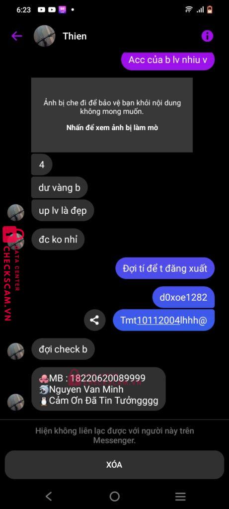 Scammer Alert: Nguyễn Văn Minh Reported: November 16, 2024 Scammer Information Full Name: Nguyễn Văn Minh Payment Gate: Mb bank Payment Account: 18220620089999 Category: Marketplace scams Source: Checkscam Evidence Files Report Description Mới sáng sớm nên k gdtg Tin tưởng mà bị lừa Comments Your comment Add Comment No comments yet. Be the first to share your experience with this scammer.