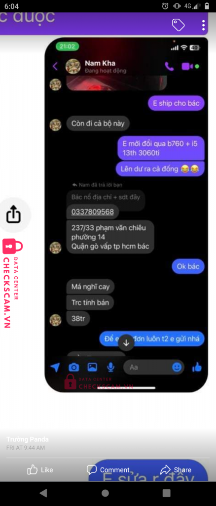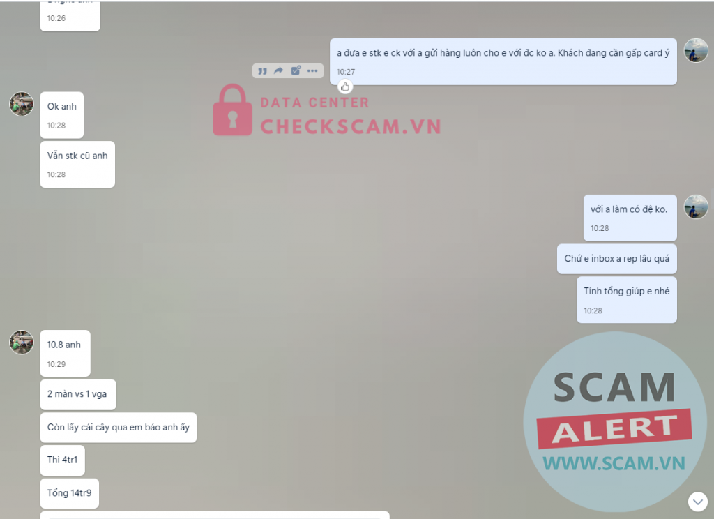 Đối tượng này bán card đồ hoạ RTX 3060TI và 1 bộ PC I3 9100 với tổng giá trị là 9.600.000 VNĐ. Do đã có giao dịch từ trước và do nhu cầu cấp bách nên tôi đã chuyển khoản cho đối tượng 5.500.000 VNĐ để đối tượng chuyển hàng qua nhà xe cho tôi nhanh chóng, sau khi nhận hàng tôi sẽ chuyển số còn lại. Sau khi ck xong thì đối tượng lặn mất tâm và không có cách nào liên hệ được cả.