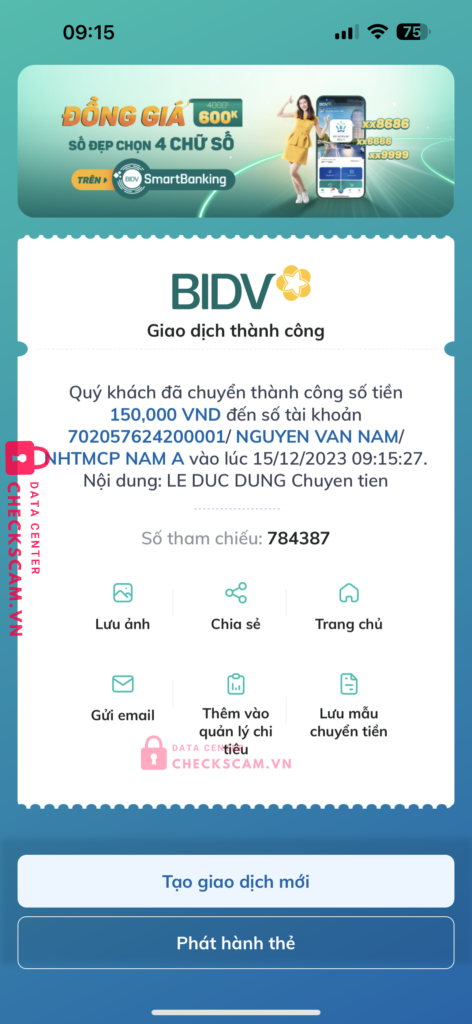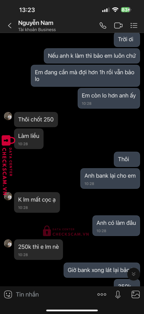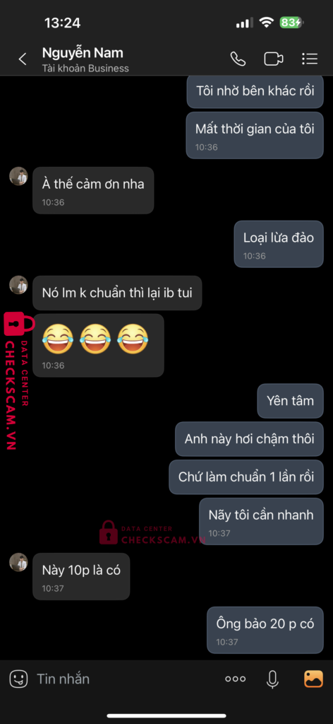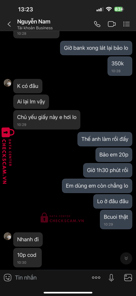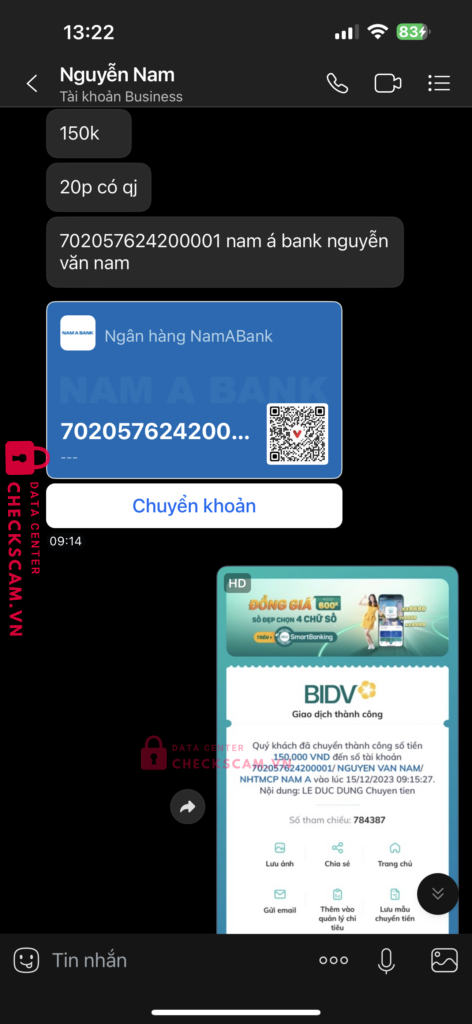 Scammer Alert: Nguyễn Văn Nam Reported: November 16, 2024 Scammer Information Full Name: Nguyễn Văn Nam Payment Gate: Ngân hàng Nam Á Payment Account: 702057624200001 Category: Marketplace scams Source: Checkscam Evidence Files Report Description Lừa đảo tiền chỉnh sửa ảnh Comments Your comment Add Comment No comments yet. Be the first to share your experience with this scammer.