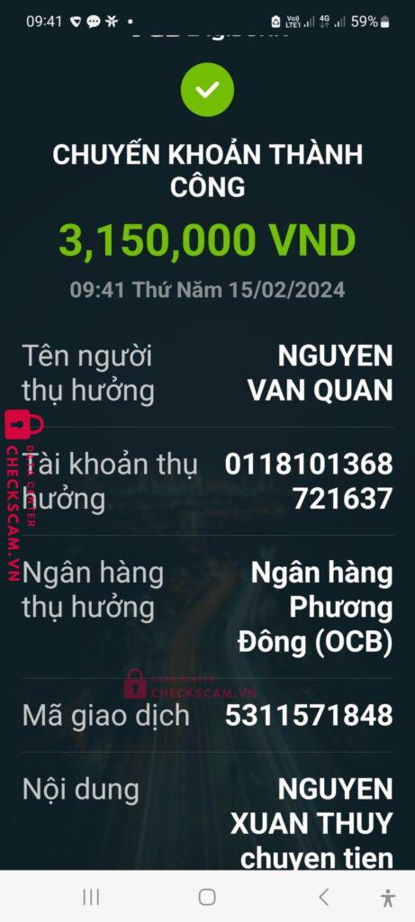 Scammer Alert: Nguyễn Văn Quân Reported: November 16, 2024 Scammer Information Full Name: Nguyễn Văn Quân Payment Gate: OCB Payment Account: 0118101368721637 Category: Marketplace scams Source: Checkscam Evidence Files Report Description Gỉa mạo nhà xe mai anh để nhận tiền cọc của khách hàng Comments Your comment Add Comment No comments yet. Be the first to share your experience with this scammer.