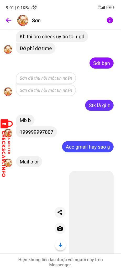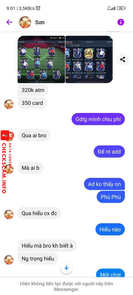 Scammer Alert: NGUYEN VAN SON Reported: November 16, 2024 Scammer Information Full Name: NGUYEN VAN SON Payment Gate: MB Payment Account: 199999997807 Category: Marketplace scams Source: Checkscam Evidence Files Report Description Gdtg fifa mobile hàn quốc, chốt acc 320k. mình đã chuyển tiền bạn ấy chặn mình luôn Comments Your comment Add Comment No comments yet. Be the first to share your experience with this scammer.