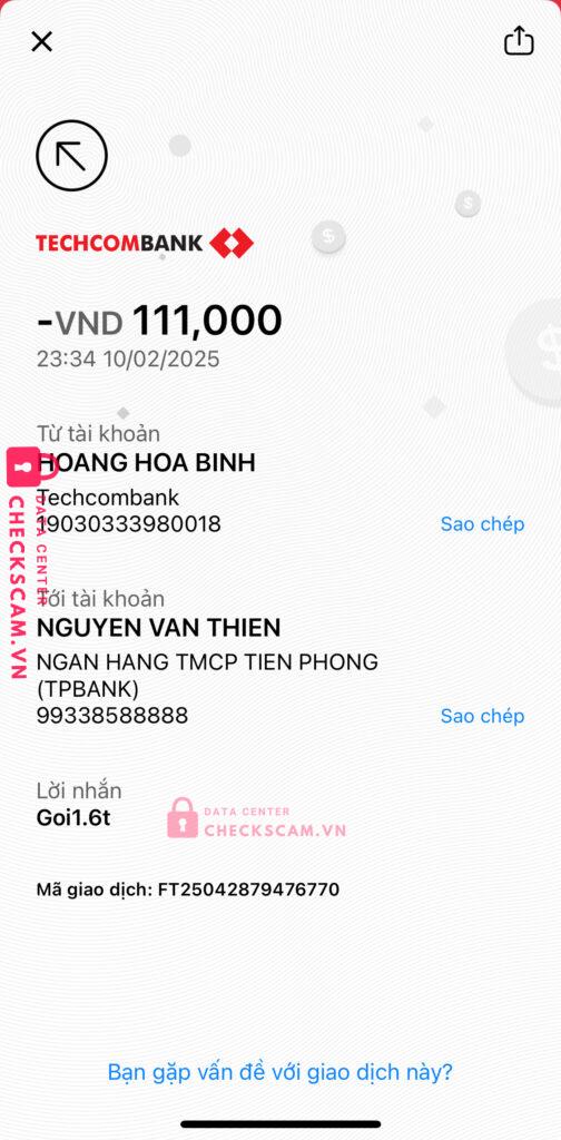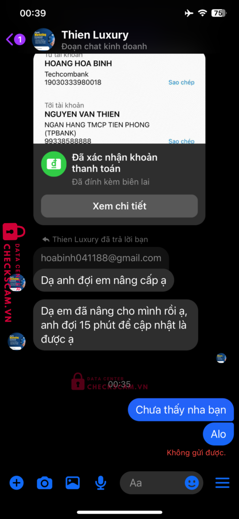 Scammer Alert: Nguyen van thien Reported: March 7, 2025 Scammer Information Full Name: Nguyen van thien Payment Gate: Tp Bank Payment Account: 99338588888 Category: Marketplace scams Source: Checkscam Evidence Files Report Description Nâng cấp gói premium 6 tháng nhưng bank xong chặn luôn Comments Your comment Add Comment No comments yet. Be the first to share your experience with this scammer.