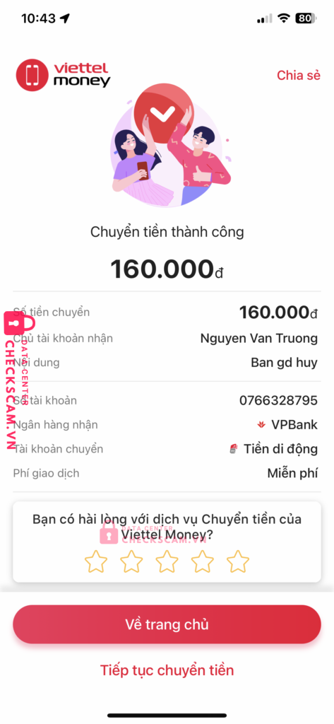 Scammer Alert: NGUYEN VAN TRUONG Reported: March 7, 2025 Scammer Information Full Name: NGUYEN VAN TRUONG Payment Gate: Vp bank Payment Account: 0766328795 Category: Marketplace scams Source: Checkscam Evidence Files Report Description Lừa đảo chiếm đoạt tài sản Comments Your comment Add Comment No comments yet. Be the first to share your experience with this scammer.