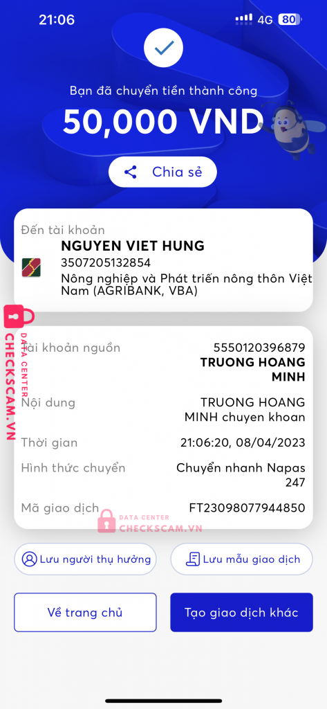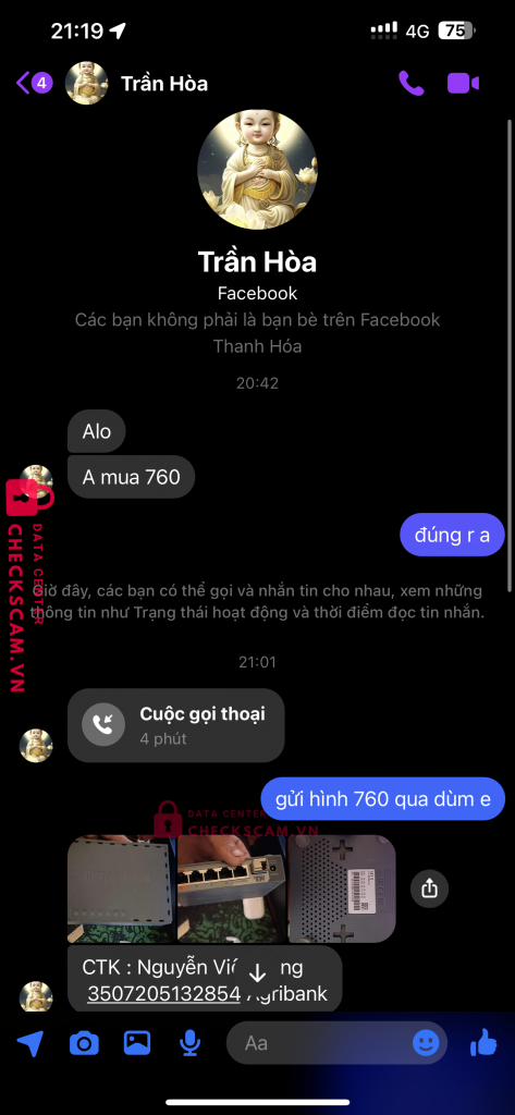 Scammer Alert: Nguyễn Việt Hùng Reported: November 16, 2024 Scammer Information Full Name: Nguyễn Việt Hùng Payment Gate: Agribank Payment Account: 3507205132854 Category: Marketplace scams Source: Checkscam Evidence Files Report Description Lừa đảo chuyển cọc mua hàng điện tử Comments Your comment Add Comment No comments yet. Be the first to share your experience with this scammer.