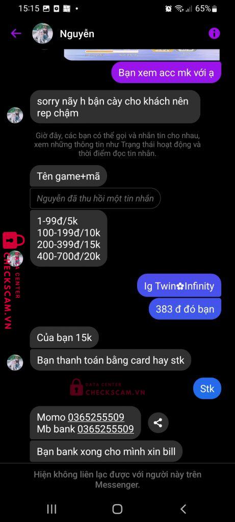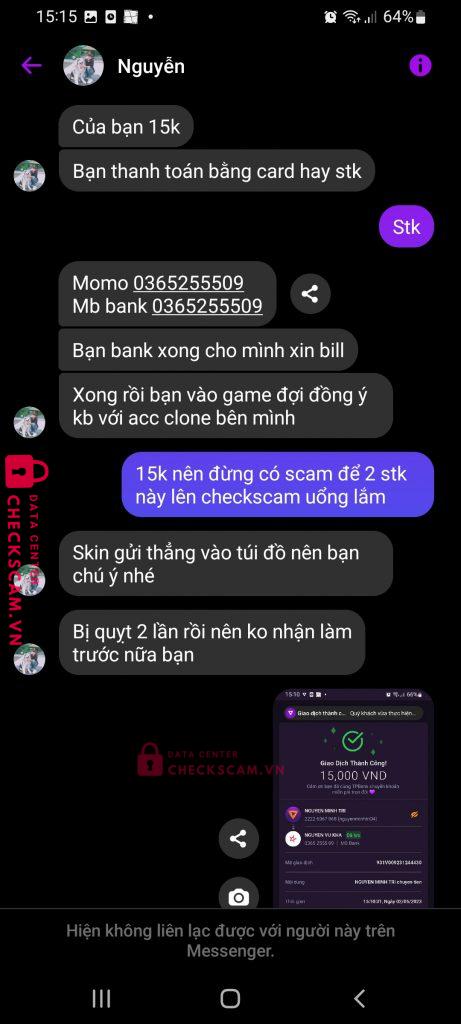 Scammer Alert: Nguyễn Vũ Kha Reported: November 16, 2024 Scammer Information Full Name: Nguyễn Vũ Kha Phone Number: 0365255509 Payment Gate: MB Payment Account: 0365255509 Category: Marketplace scams Source: Checkscam Evidence Files Report Description Scammer sự kiện liên quân Comments Your comment Add Comment No comments yet. Be the first to share your experience with this scammer.