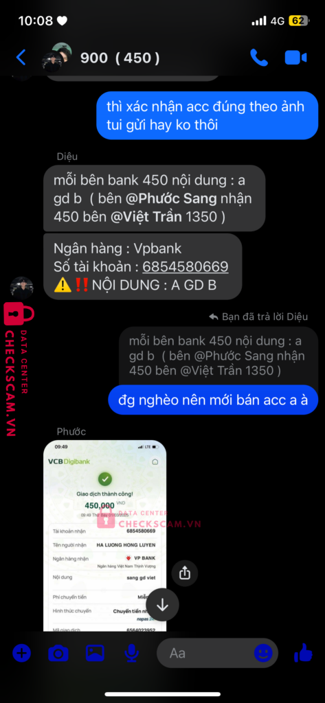 Scammer Alert: Nguyễn Xuân Diệu Reported: March 7, 2025 Scammer Information Full Name: Nguyễn Xuân Diệu Payment Gate: Vpbank Payment Account: 6854580669 Category: Marketplace scams Source: Checkscam Evidence Files Report Description giao dịch hết mà ko chịu đưa tiền Comments Your comment Add Comment No comments yet. Be the first to share your experience with this scammer.