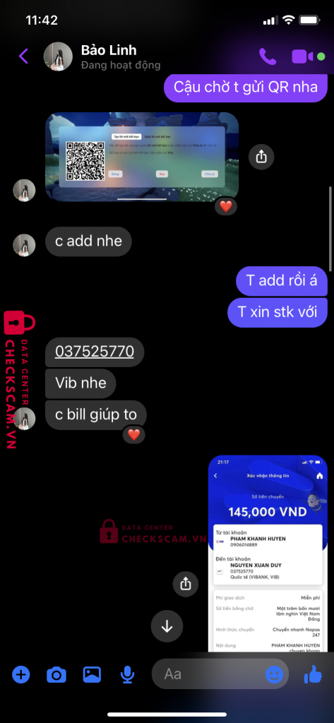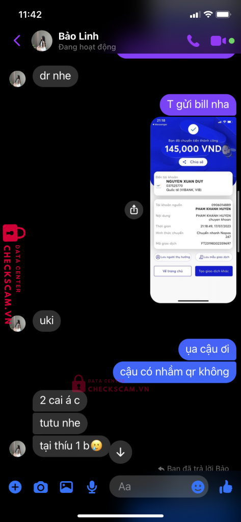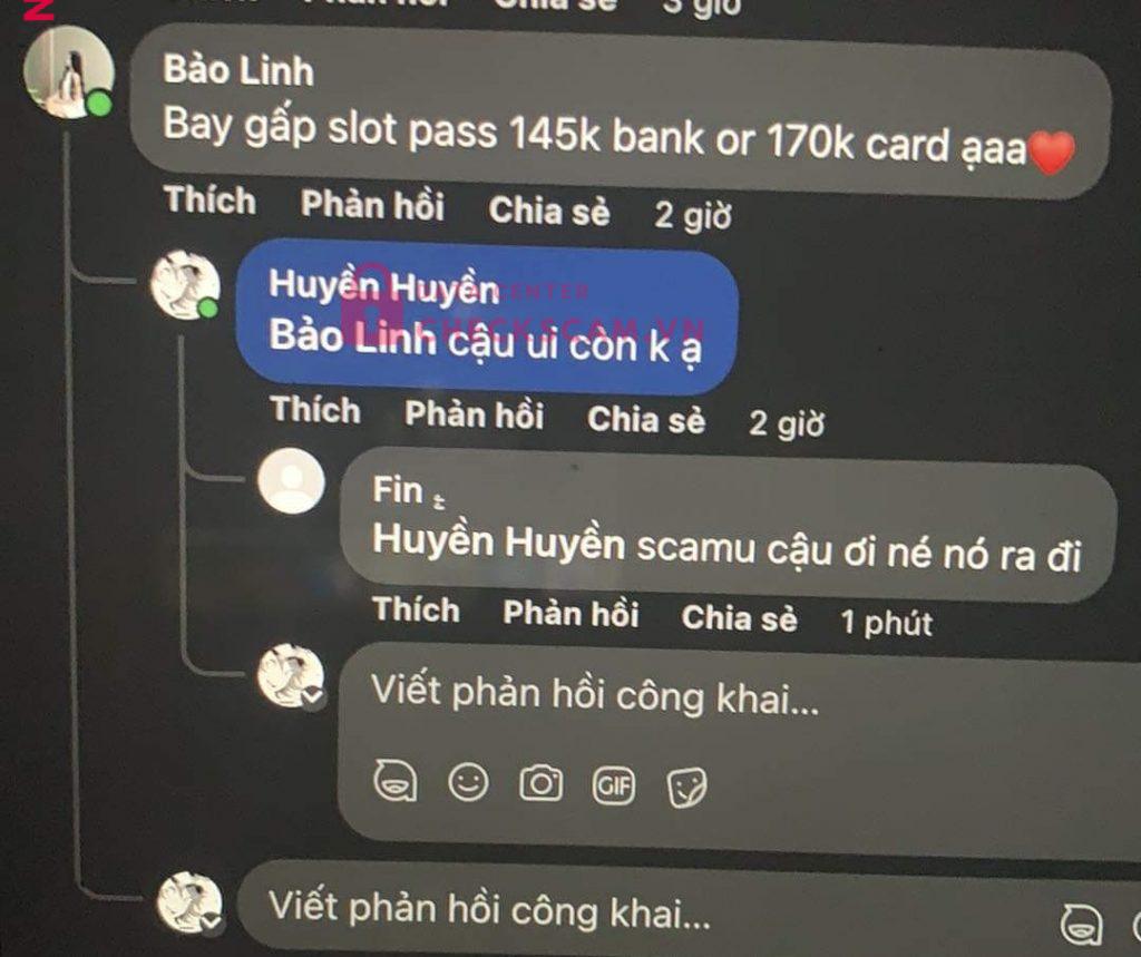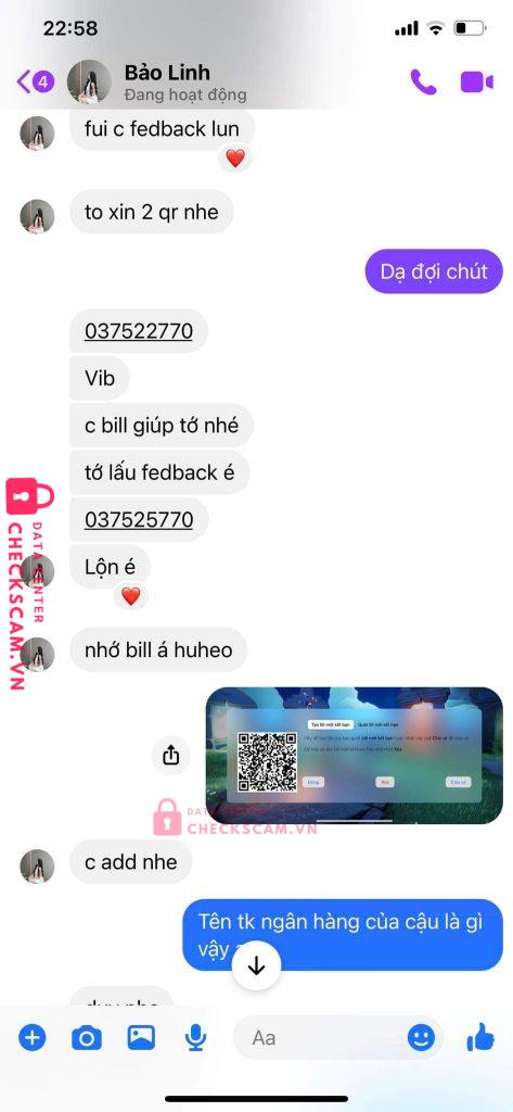 Tài khoản fb tên Bảo Linh này lừa 3 người chúng tôi giao dịch (17/7), sau đó ôm tiền nhắn tin không trả lời đến giờ (18/7). Tôi chắc chắn rằng nhiều người khác trong group cũng đã bị lừa vì sau khi tìm hiểu, chúng tôi phát hiện tài khoản này giao dịch bằng nhiều tài khoản ngân hàng khác nữa.