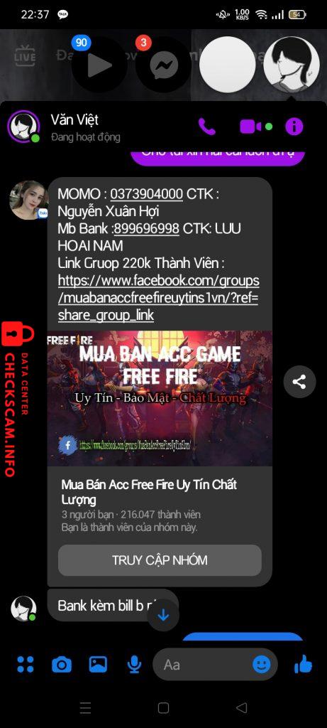 Scammer Alert: Nguyễn Xuân hợi Reported: November 16, 2024 Scammer Information Full Name: Nguyễn Xuân hợi Payment Gate: Mb bank Payment Account: 899696998 Category: Marketplace scams Source: Checkscam Evidence Files Report Description scam của tôi 1triệu Comments Your comment Add Comment No comments yet. Be the first to share your experience with this scammer.