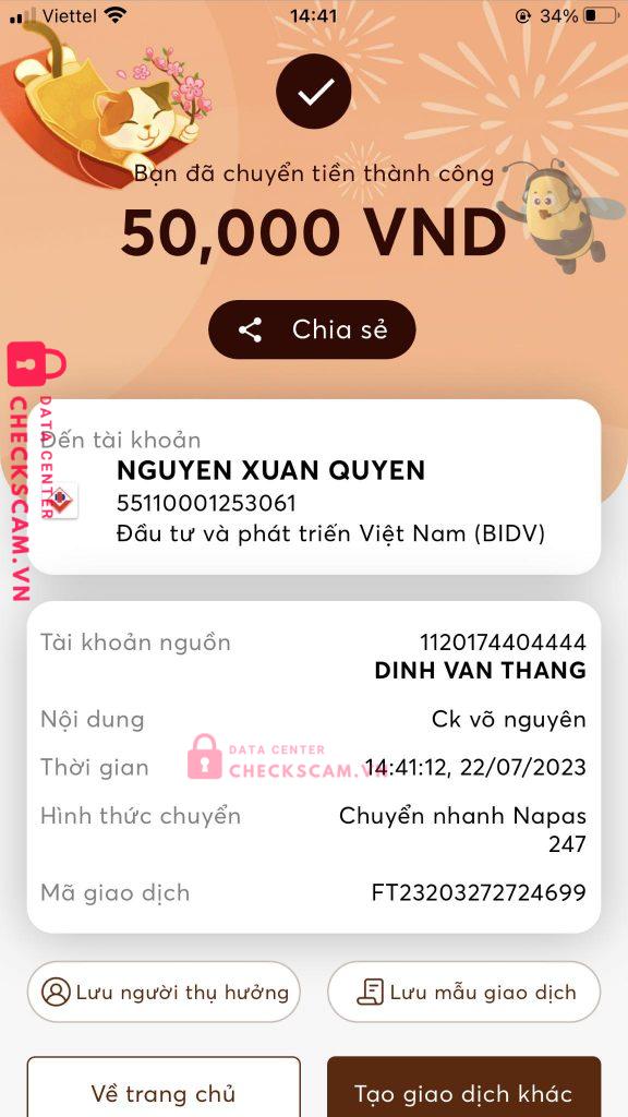 Đối tượng dùng 2 stk : 55110001253061 ( BIDV ) Nguyen Xuan Quyen