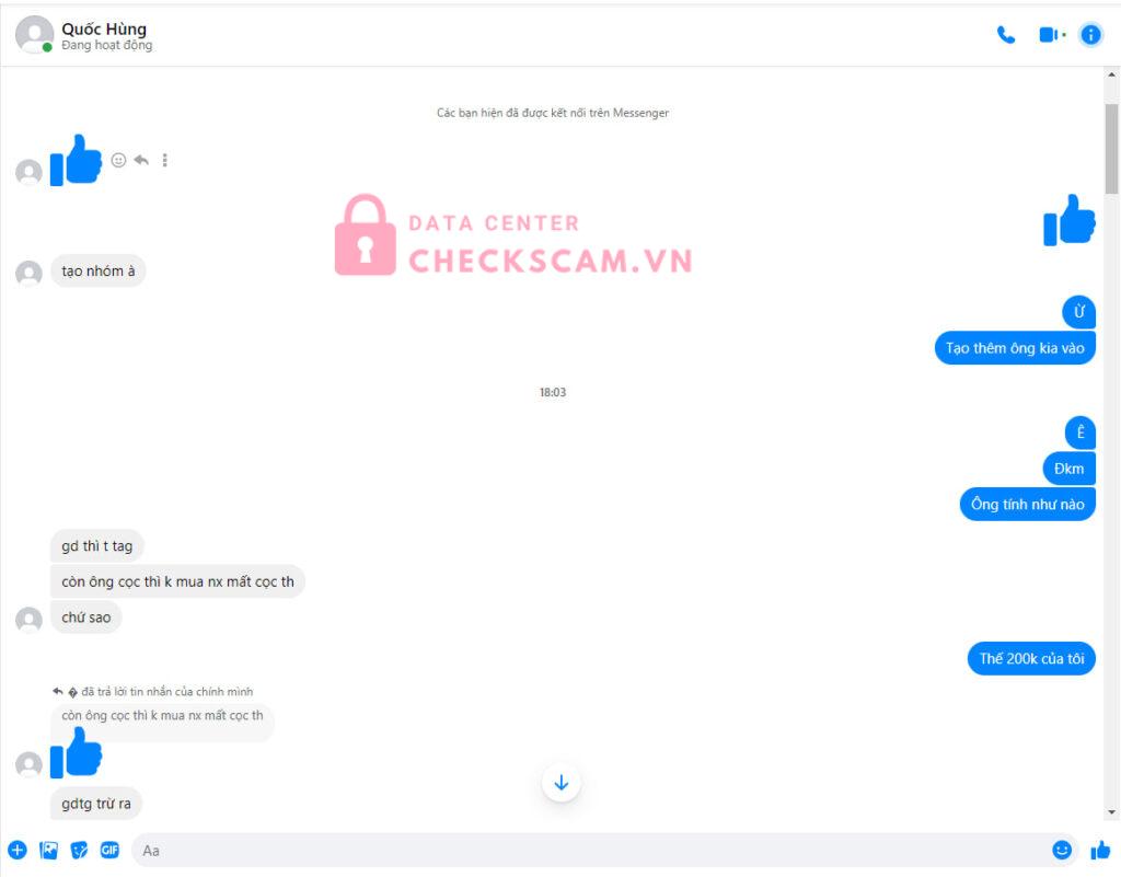 Nó bảo mình bank cọc cho nó 200k xong nó giao acc zalo cho mình. Mình bank xong nó nói mình lừa đảo( rõ ràng mình là người mất tiền) xong nó quanh co ăn chặn tiền cọc của mình.